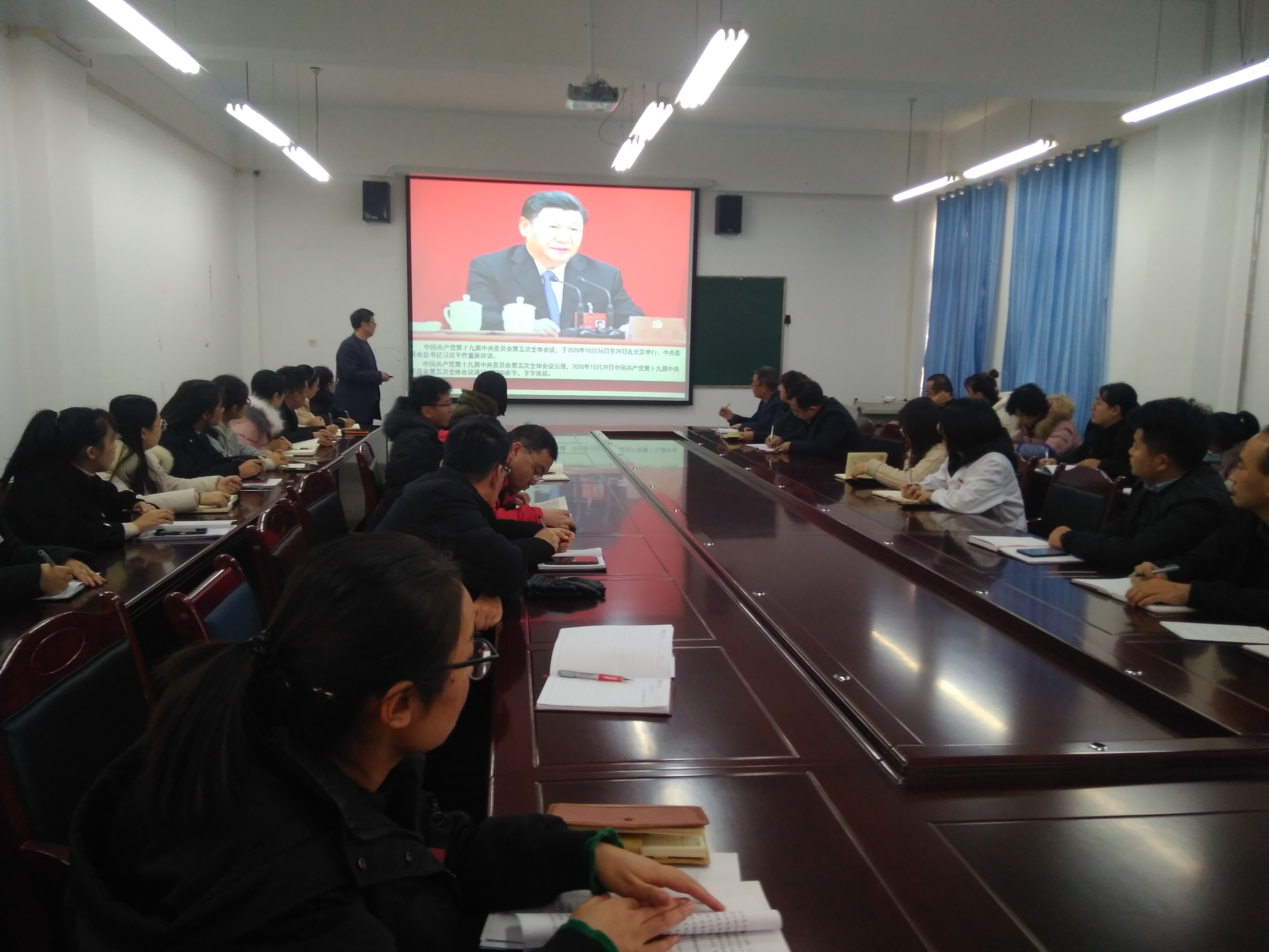 學(xué)院黨委委員、副院長張開禮為藥學(xué)系、醫(yī)學(xué)技術(shù)系宣講黨的十九屆五中全會精神