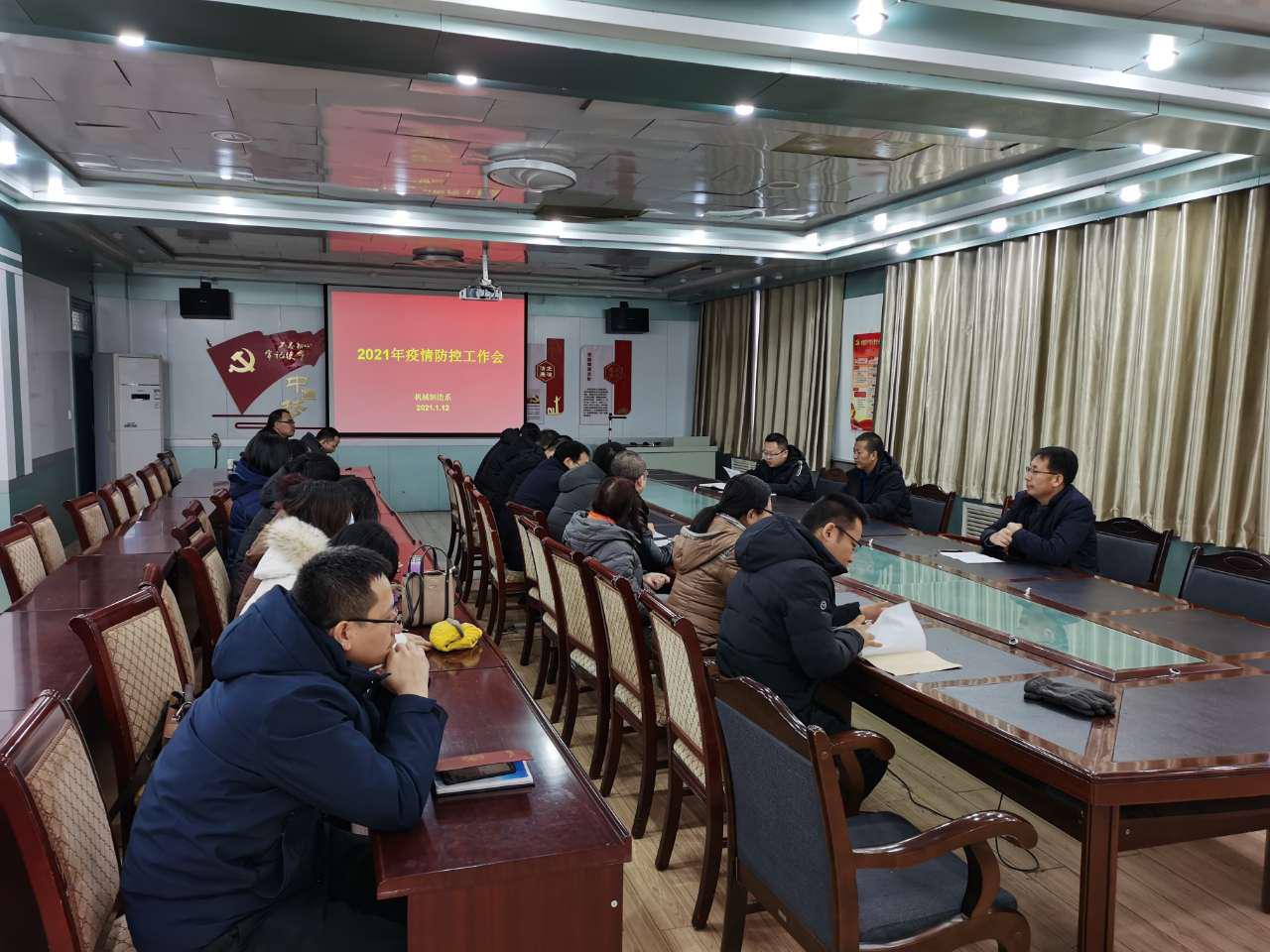 根據(jù)《武威職業(yè)學(xué)院2021年寒假春節(jié)開學(xué)前新冠肺炎疫情防控應(yīng)急處置預(yù)案》和《關(guān)于進(jìn)一步加強(qiáng)寒假期間學(xué)生疫情防控工作的通知》通知要求,1月12日,機(jī)械制造系在博學(xué)樓黨員活動(dòng)室召開疫情防控工作專題會(huì)議,傳達(dá)省市、學(xué)院疫情防控要求,部署寒假師生管理和疫情防控工作。