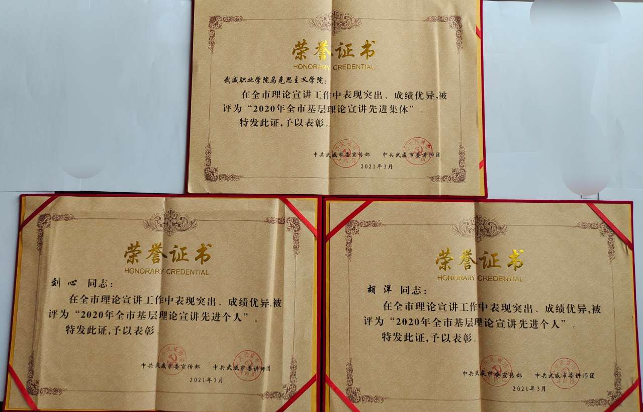 3月25日下午,武威市委宣傳部組織召開了“黨史教育專題宣講動(dòng)員會(huì)暨2020年宣講工作先進(jìn)集體和個(gè)人表彰會(huì)”。武威職業(yè)學(xué)院馬克思主義學(xué)院被授予“2020年全市基層理論宣講先進(jìn)集體”榮譽(yù)稱號,同時(shí)馬克思主義學(xué)院教師、翟存祥名師工作室成員劉心、胡洋被授予“2020年全市基層理論宣講先進(jìn)個(gè)人”榮譽(yù)稱號。