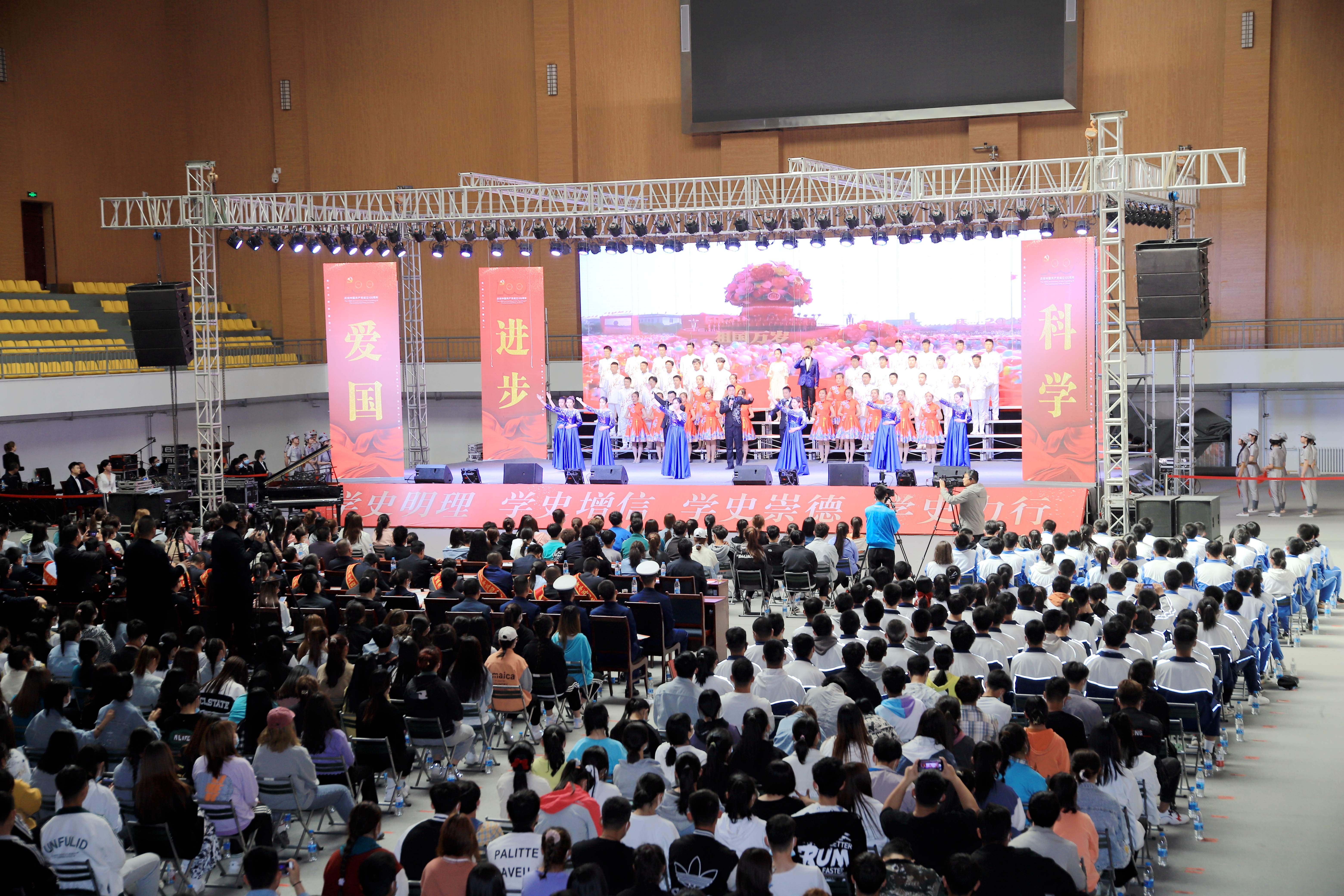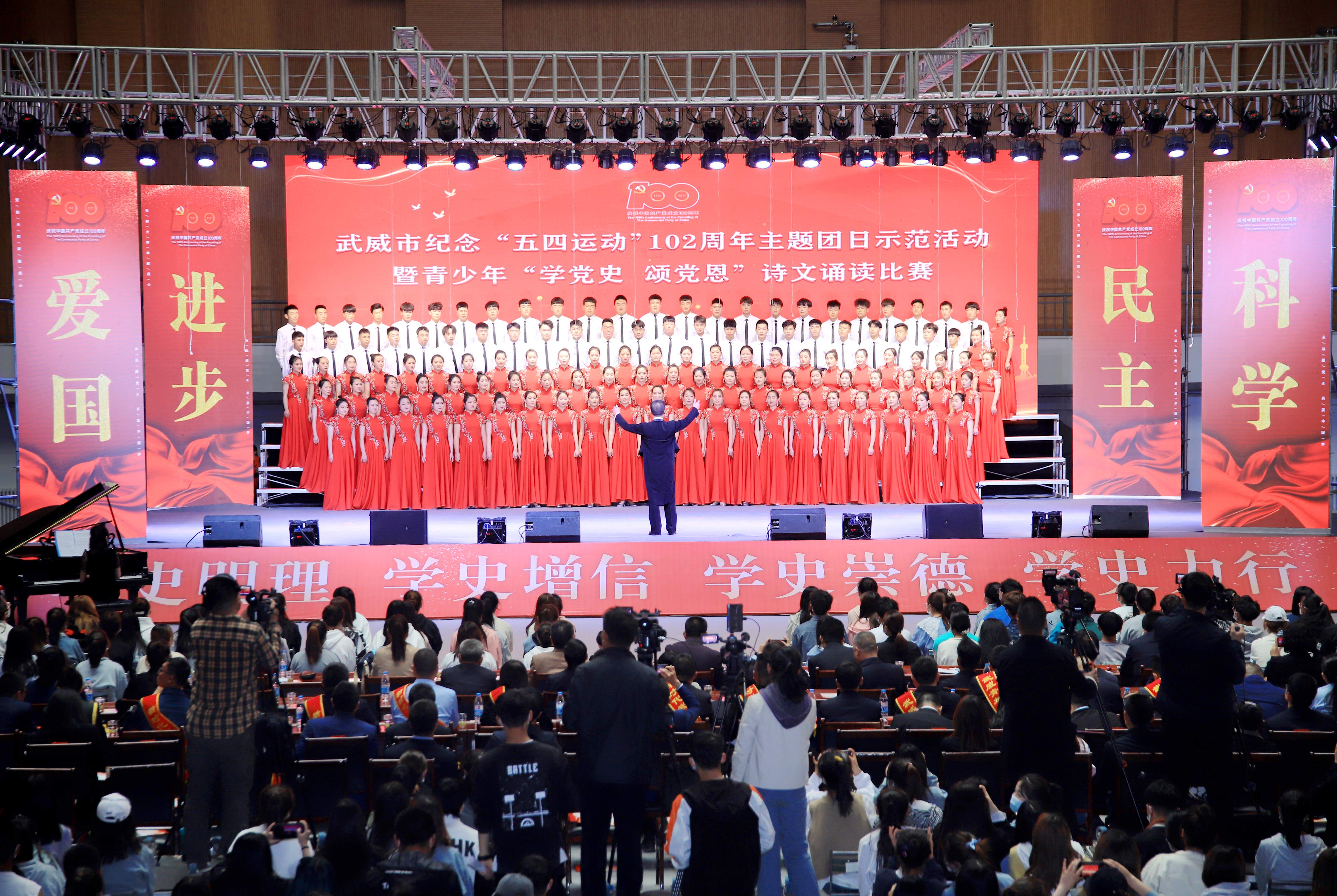今年是中國共產(chǎn)黨成立100周年,也是五四運(yùn)動(dòng)102周年。為傳承革命精神,大力弘揚(yáng)愛國、進(jìn)步、民主、科學(xué)的偉大五四精神,以實(shí)際行動(dòng)迎接黨的百年華誕,深化黨史學(xué)習(xí)教育,牢記青年初心使命,堅(jiān)定不移感黨恩、強(qiáng)信念、跟黨走,4月29日下午,武威市青少年“學(xué)黨史、頌黨恩”詩文誦讀比賽在我院體育館舉行。
