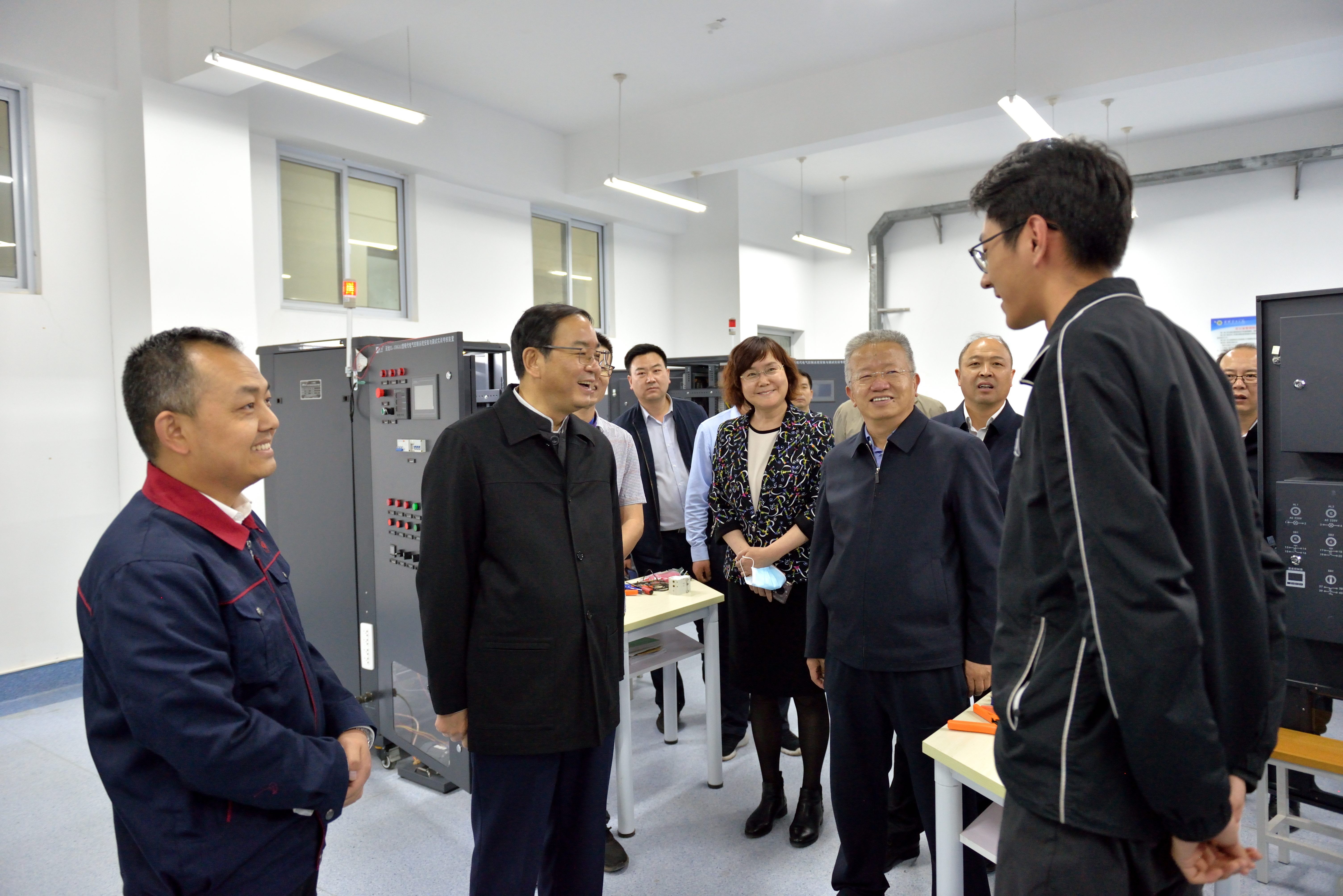 在中科低碳新能源技術學院實訓室,張世珍與正在籌備全國技能大賽的師生進行交流,并鼓勵他們認真準備,爭取在國賽取得優(yōu)異成績。