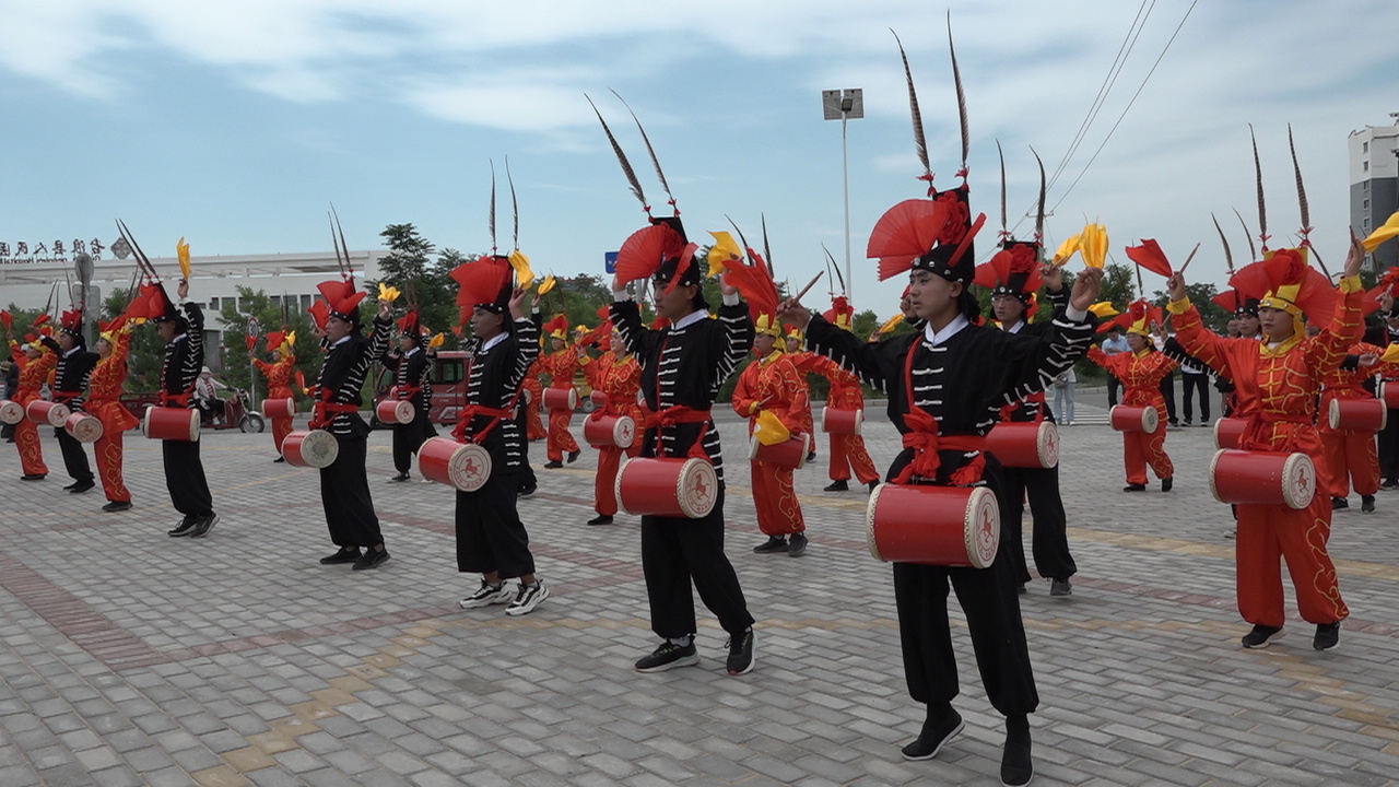 揭牌儀式后,學(xué)院大學(xué)生攻鼓子藝術(shù)團(tuán)現(xiàn)場進(jìn)行了非物質(zhì)文化遺產(chǎn)——涼州攻鼓子表演。