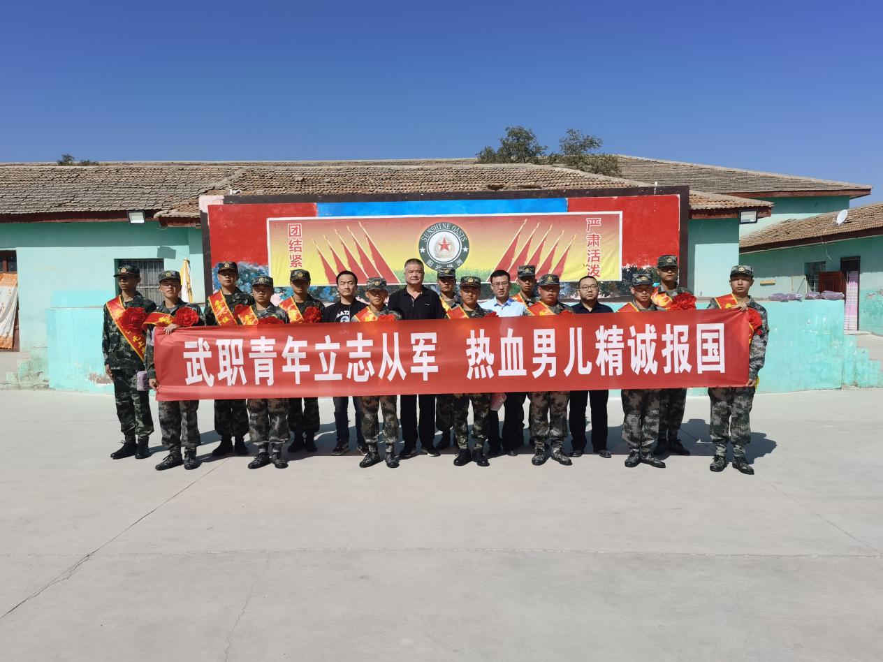 在入伍學(xué)生歡送會(huì)上,學(xué)院領(lǐng)導(dǎo)、涼州區(qū)人武部領(lǐng)導(dǎo)和基地負(fù)責(zé)人共同為入伍學(xué)生披上綬帶、佩戴紅花,并向同學(xué)們贈(zèng)送了紀(jì)念品。王守云在講話中勉勵(lì)同學(xué)們要牢記母校校風(fēng)校訓(xùn),努力成長成為一名優(yōu)秀的人民子弟兵,以優(yōu)良的作風(fēng)和良好的精神風(fēng)貌,擔(dān)負(fù)起一名軍人的神圣職責(zé),用青春和汗水書寫新的人生篇章。