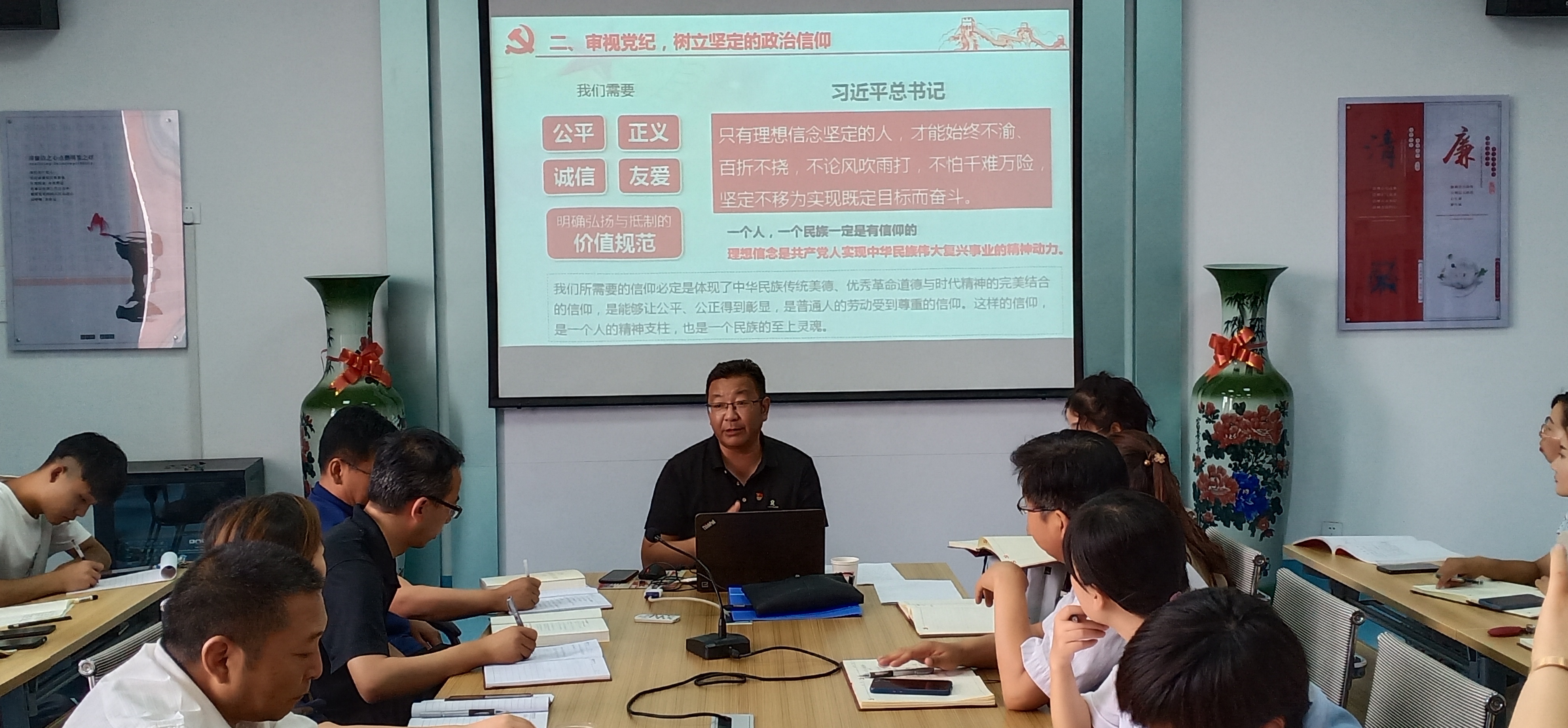 陳曉煜以《不忘初心 牢記歷史,增強(qiáng)廉潔意識(shí)》為題,用樸實(shí)精煉的語(yǔ)言、身邊生動(dòng)的事例,重點(diǎn)從不忘初心,重溫黨的歷史和黨紀(jì)歷史;審視黨紀(jì),樹立堅(jiān)定的政治信仰;解析腐敗,認(rèn)清腐敗的現(xiàn)狀及危害;增強(qiáng)廉潔意識(shí),筑牢思想道德防線四個(gè)方面進(jìn)行了講解。