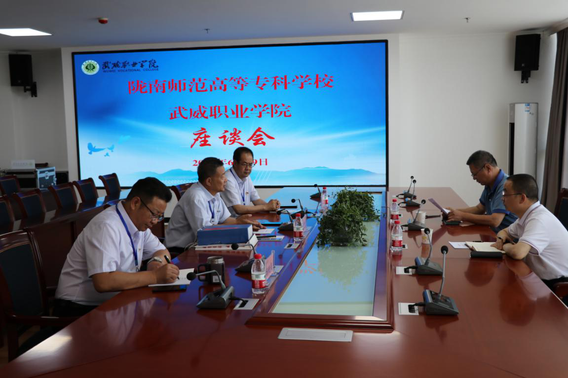 座談會上,趙明向余學(xué)軍一行詳細(xì)介紹了學(xué)院建設(shè)發(fā)展歷程、專業(yè)建設(shè)、師資隊伍建設(shè)、招生就業(yè)、科研服務(wù)、校企合作、與中國科學(xué)院合作辦學(xué)——中科低碳新能源技術(shù)學(xué)院建設(shè)和“雙高計劃”院校建設(shè)等情況。余學(xué)軍介紹了隴南示范高等專科學(xué)校近年來發(fā)展與建設(shè)的基本情況,并就職業(yè)院校發(fā)展及管理經(jīng)驗進(jìn)行了交流。