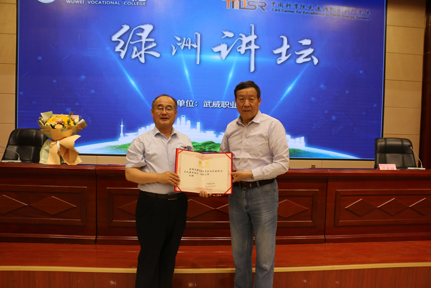 活動(dòng)第二階段,由中科低碳新能源技術(shù)學(xué)院院長(zhǎng)楊存忠為梁志強(qiáng)頒發(fā)了聘請(qǐng)其擔(dān)任武威職業(yè)學(xué)院中科低碳新能源技術(shù)學(xué)院專業(yè)建設(shè)指導(dǎo)委員會(huì)委員和武威職業(yè)學(xué)院兼職教授。梁主任還與在場(chǎng)師生進(jìn)行了愉快的溝通互動(dòng)環(huán)節(jié),從未來(lái)就業(yè)工作和專業(yè)建設(shè)方面為師生答疑解惑。
