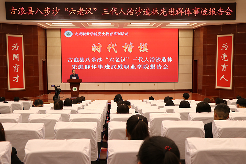 八步沙“六老漢”三代人治沙造林先進(jìn)群體事跡報告團走進(jìn)武威職業(yè)學(xué)院