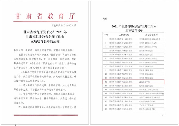 中科低碳新能源技術(shù)學(xué)院黃述杰負(fù)責(zé)的“甘肅省職業(yè)教育黃述杰工作室”獲評甘肅省職業(yè)教育名師工作室。