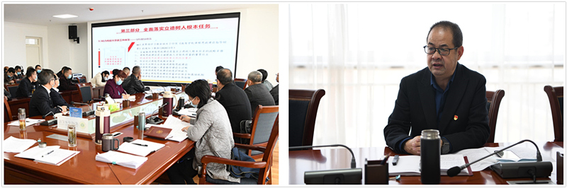 會議傳達學(xué)習(xí)了習(xí)近平總書記在學(xué)校思政課教師座談會上發(fā)表的重要講話《思政課是落實立德樹人根本任務(wù)的關(guān)鍵課程》。黨委副書記、省級思政課名師工作室負(fù)責(zé)人翟存祥圍繞學(xué)習(xí)貫徹習(xí)近平總書記講話精神作了專題輔導(dǎo)報告。