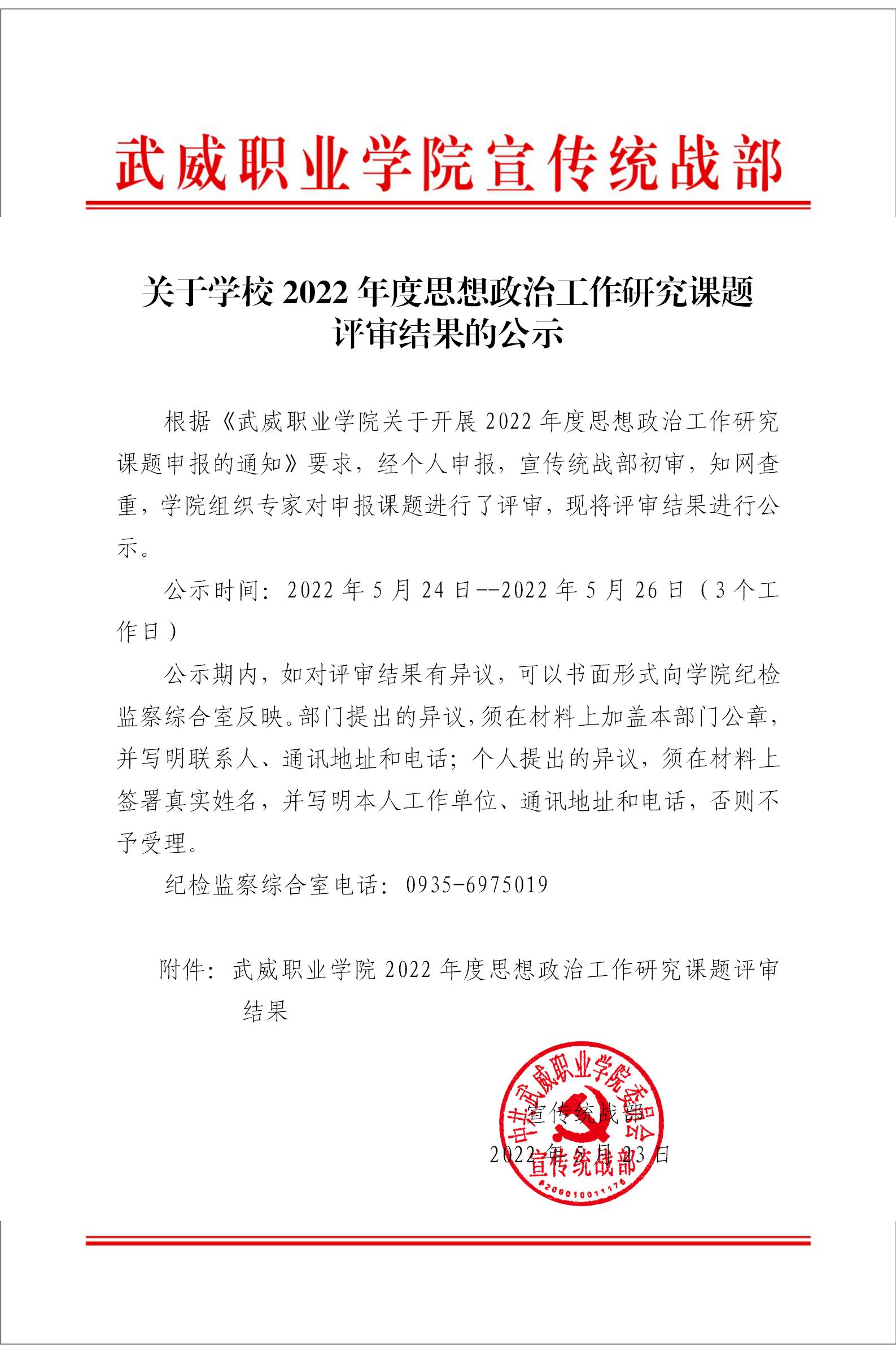 附件:武威職業(yè)學(xué)院2022年度思想政治工作研究課題評(píng)審結(jié)果