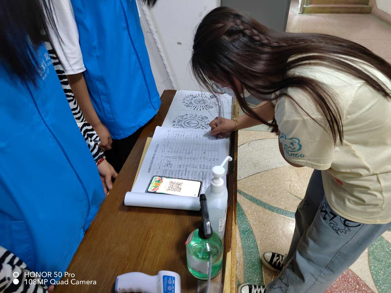 “您好,請出示一下您的健康碼、行程碼和核酸檢測證明,謝謝配合……”“您好,請在這邊做一下登記,謝謝配合?!蔽以嚎挂咧驹刚叻?wù)隊,在食堂門口,水房門口,宿舍樓,教學(xué)樓門口,志愿者們身穿“紅馬甲”,以所在學(xué)院為單元按照疫情期間門禁管理要求開展“疫情防控值班”志愿服務(wù)活動,凡來訪者一律要求戴口罩,亮健康碼,行程碼,測量體溫正常后方可通行。