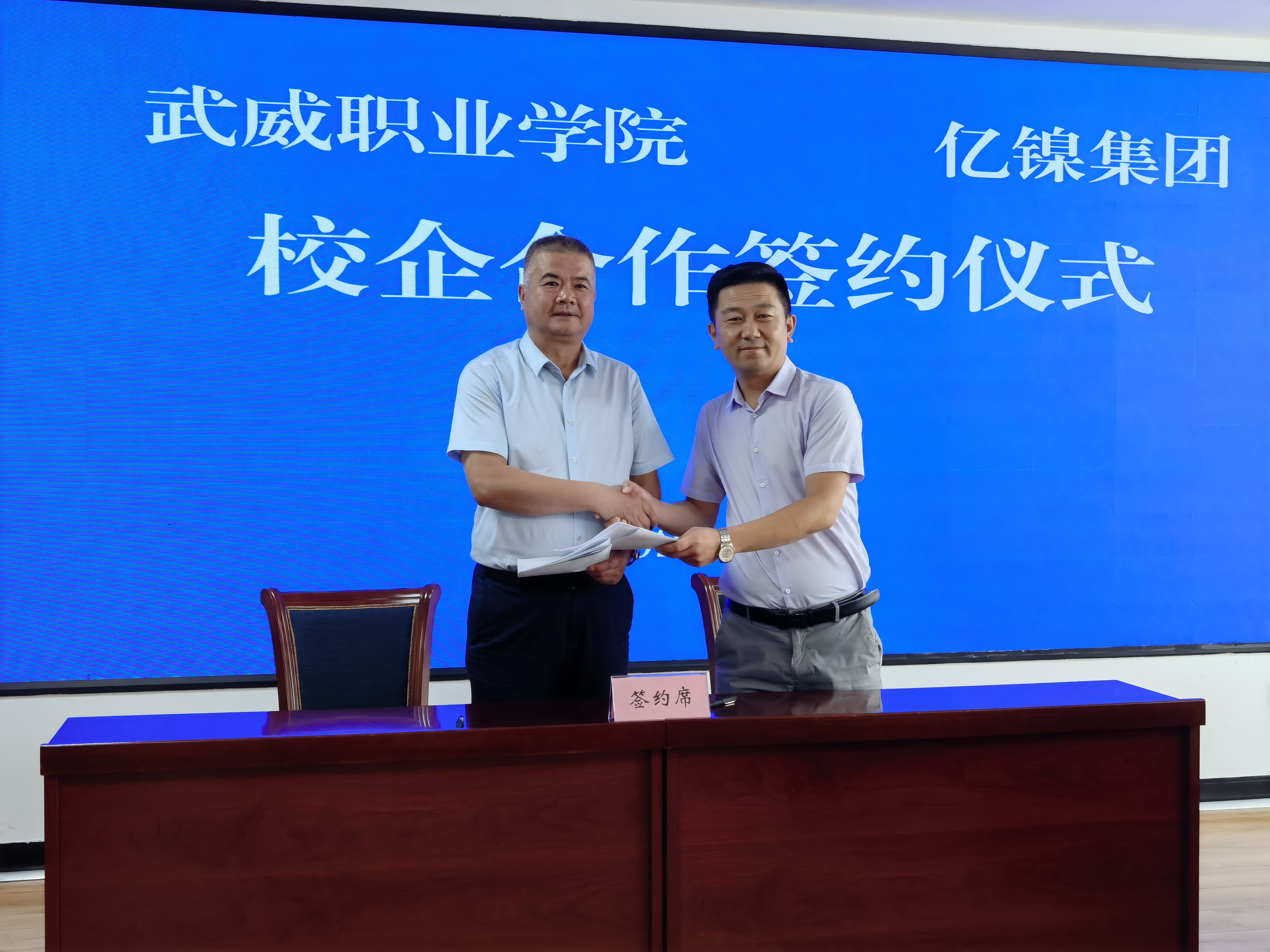 金昌市來校企業(yè)代表億鎳集團總經(jīng)理宋飛林介紹了集團概況。他從集團產(chǎn)業(yè)需求出發(fā),在專業(yè)設(shè)置、人才培養(yǎng)、實習(xí)實訓(xùn)共建等方面進行了深入交流。雙方均表示,后續(xù)要在產(chǎn)教融合、產(chǎn)學(xué)研合作、儲能研究中心建設(shè)、高層次人才技術(shù)專家共享、教師實踐基地建設(shè)、畢業(yè)生見習(xí)與就業(yè)等方面開展實質(zhì)性合作。王守云與億鎳集團副總經(jīng)理梁劍代表雙方簽訂了校企合作框架協(xié)議。