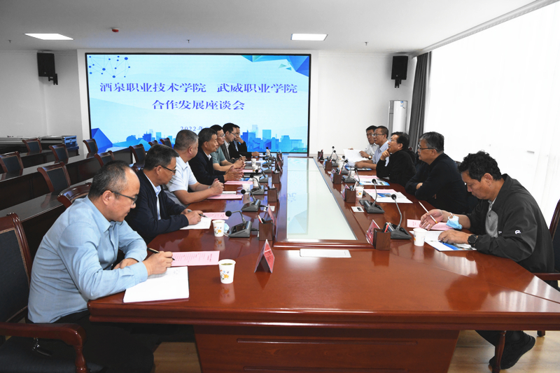 易志軍一行先后到學(xué)校紅色文化藝術(shù)館、翟存祥思想政治理論課名師工作室、武威市體育場(chǎng)、旅游管理專業(yè)實(shí)訓(xùn)室等地考察并在能源科技樓811會(huì)議室召開了兩校合作發(fā)展座談會(huì),趙明向易志軍一行詳細(xì)介紹了學(xué)校近年來改革發(fā)展、人才培養(yǎng)、招生就業(yè)、合作辦學(xué)、“雙高計(jì)劃”學(xué)校建設(shè)等情況。易志軍就酒泉職業(yè)技術(shù)學(xué)院建設(shè)發(fā)展情況進(jìn)行了詳細(xì)介紹。雙方就河西走廊職業(yè)教育與區(qū)域產(chǎn)業(yè)互動(dòng)發(fā)展、融合發(fā)展、高質(zhì)量發(fā)展的路徑和方法進(jìn)行了深入探討,并交流了學(xué)校建設(shè)和管理方面好的經(jīng)驗(yàn)和做法。