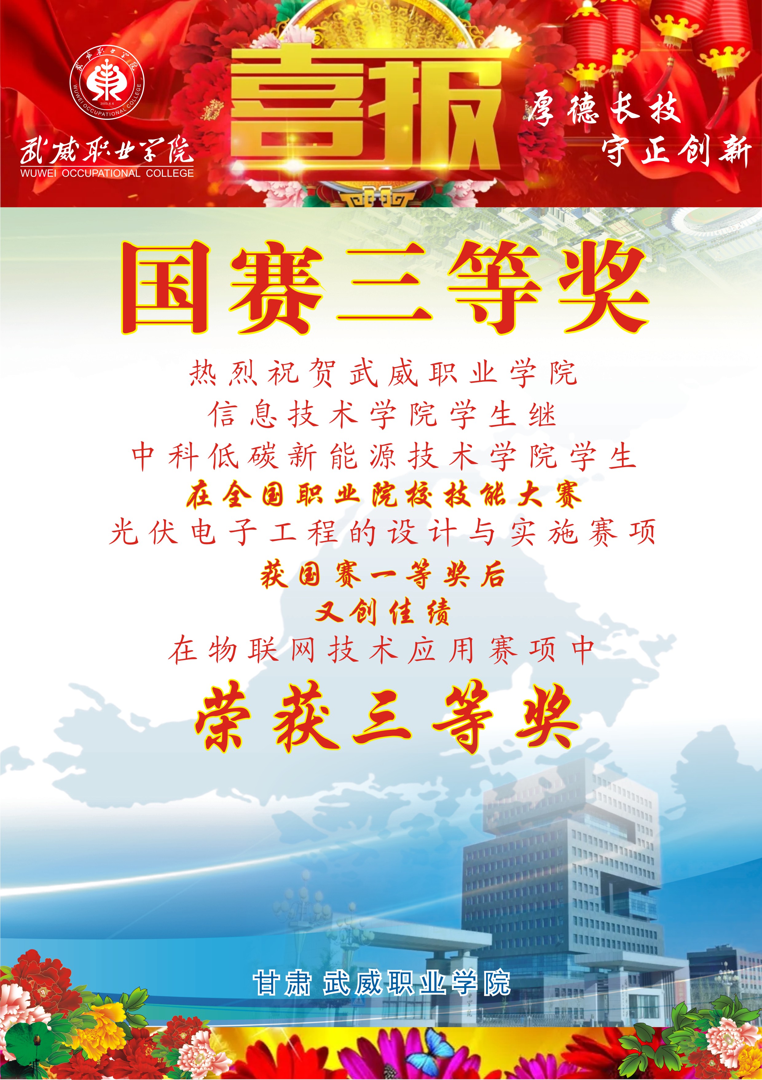 武威職業(yè)學(xué)院榮獲全國職業(yè)院校技能大賽國賽一等獎