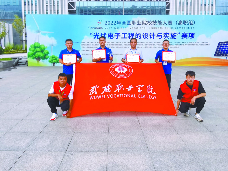 武威職業(yè)學(xué)院的學(xué)生在2022年全國職業(yè)院校技能大賽高職組光伏電子工程的設(shè)計與實施賽項中榮獲團體一等獎。(武威職業(yè)學(xué)院供圖)