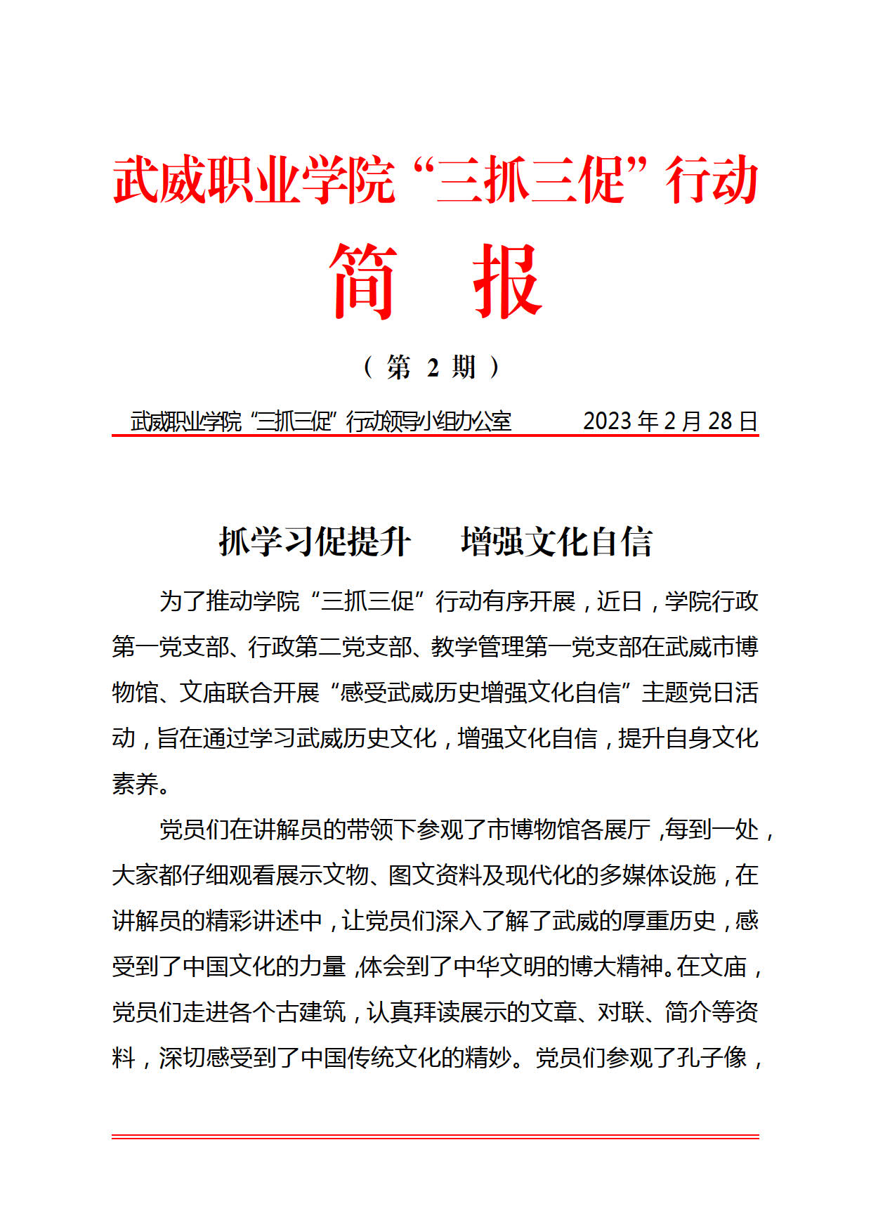 簡報第2期:抓學習促提升 增強文化自信