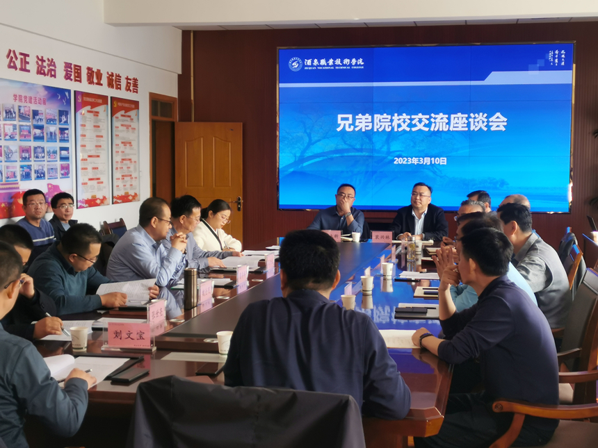3月10日,學(xué)校黨委副書(shū)記翟存祥,黨委委員、副校長(zhǎng)張開(kāi)禮一行赴酒泉職業(yè)技術(shù)學(xué)院,就“雙高計(jì)劃”學(xué)校建設(shè)、本科層次職業(yè)學(xué)校申辦、產(chǎn)教融合、社會(huì)服務(wù)等工作進(jìn)行學(xué)習(xí)交流。酒泉職業(yè)技術(shù)學(xué)院黨委副書(shū)記許軍及相關(guān)部門(mén)負(fù)責(zé)人陪同考察,并組織召開(kāi)交流座談會(huì)。