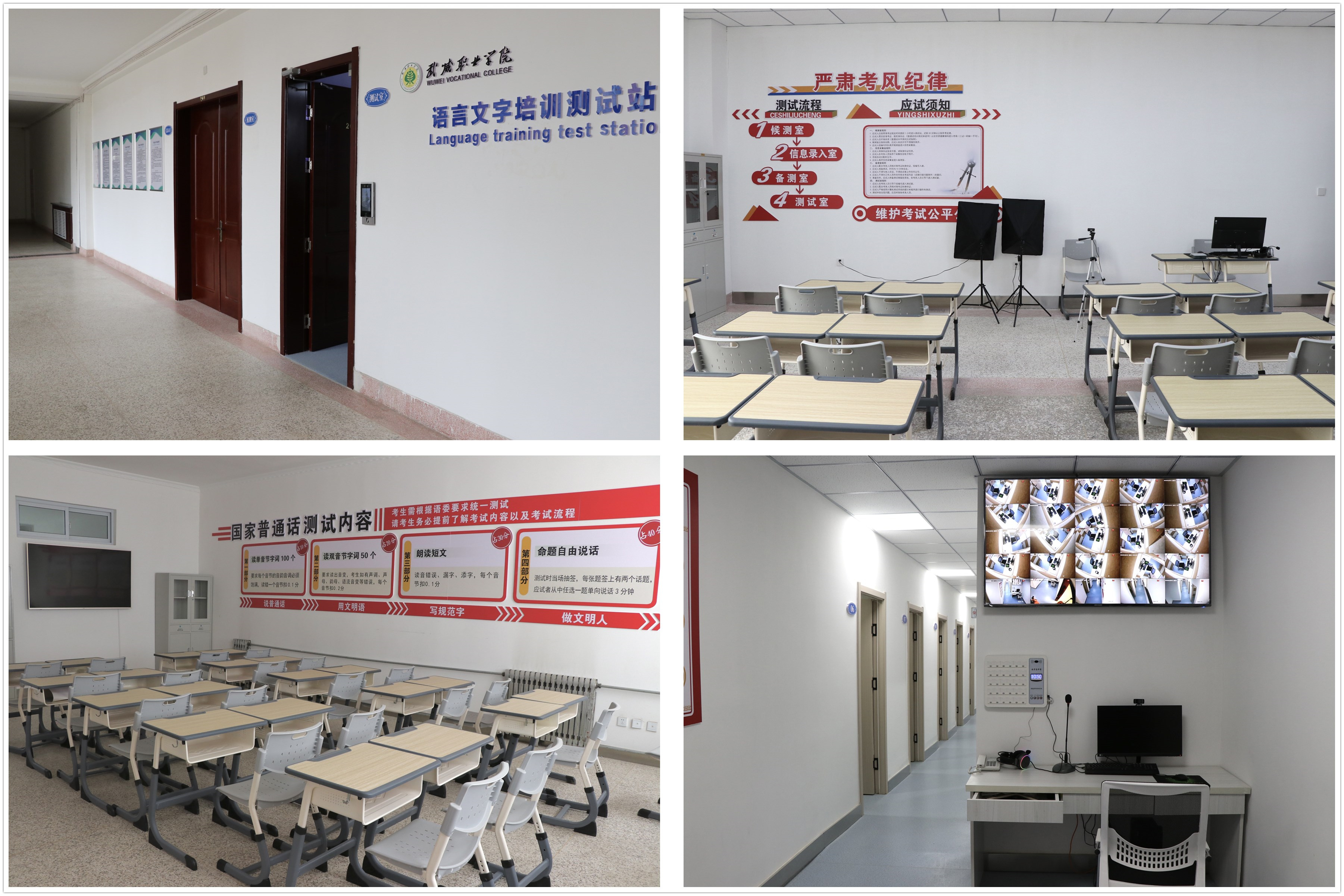 2003年建校起,學(xué)校承接武威市普通話培訓(xùn)測試任務(wù),2008年,我校語言文字培訓(xùn)測試站獲批建設(shè)。學(xué)校對普通話培訓(xùn)測試工作高度重視,努力為廣大師生搭建普通話水平培訓(xùn)測試優(yōu)質(zhì)服務(wù)平臺,2019年將“普通話標(biāo)準(zhǔn)化測試機房建設(shè)項目”列入學(xué)校“雙高”計劃建設(shè)項目,投入61萬余元,于2022年10月建成。