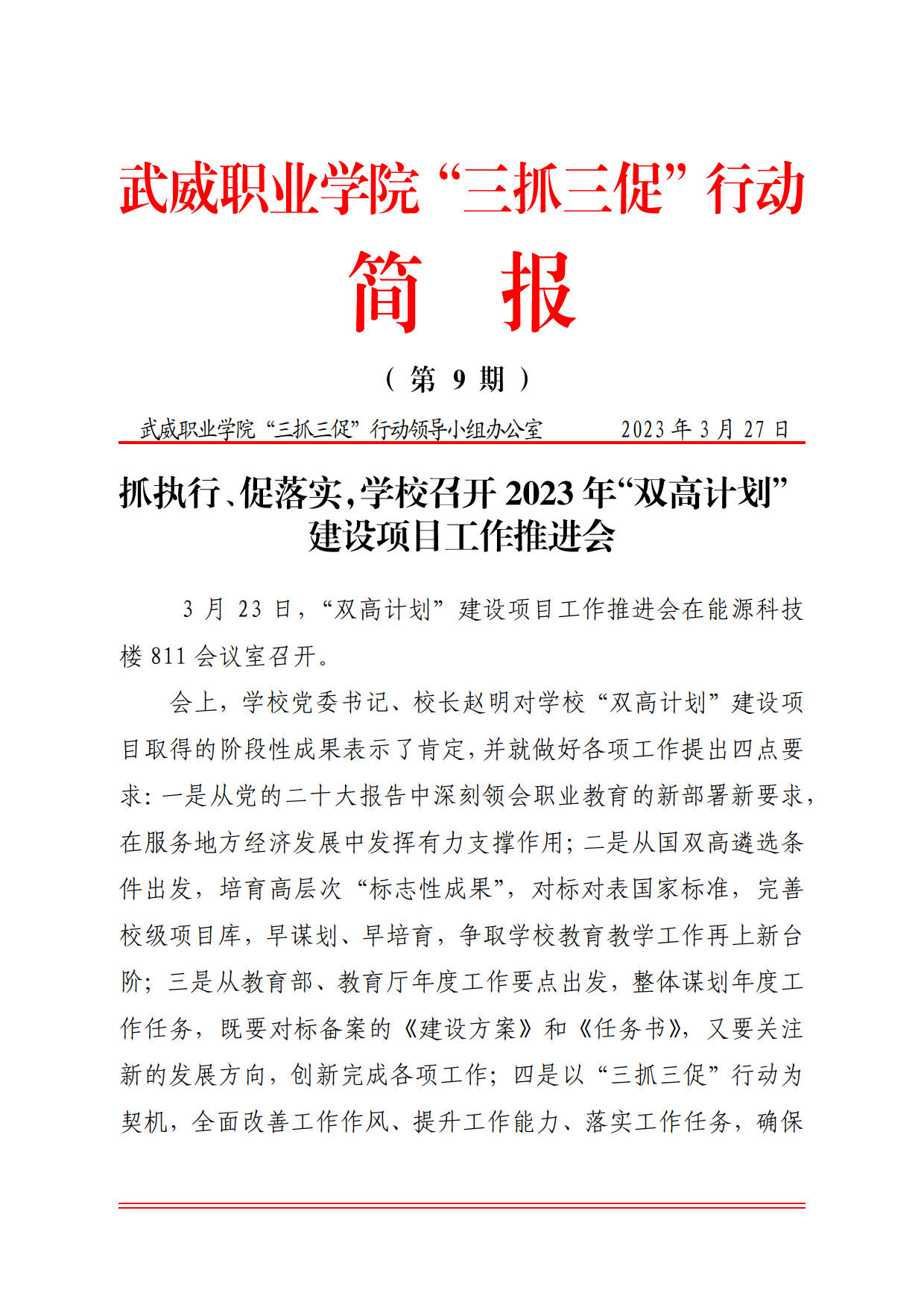簡報(bào)第9期:抓執(zhí)行、促落實(shí),學(xué)校召開2023年“雙高計(jì)劃”建設(shè)項(xiàng)目工作推進(jìn)會