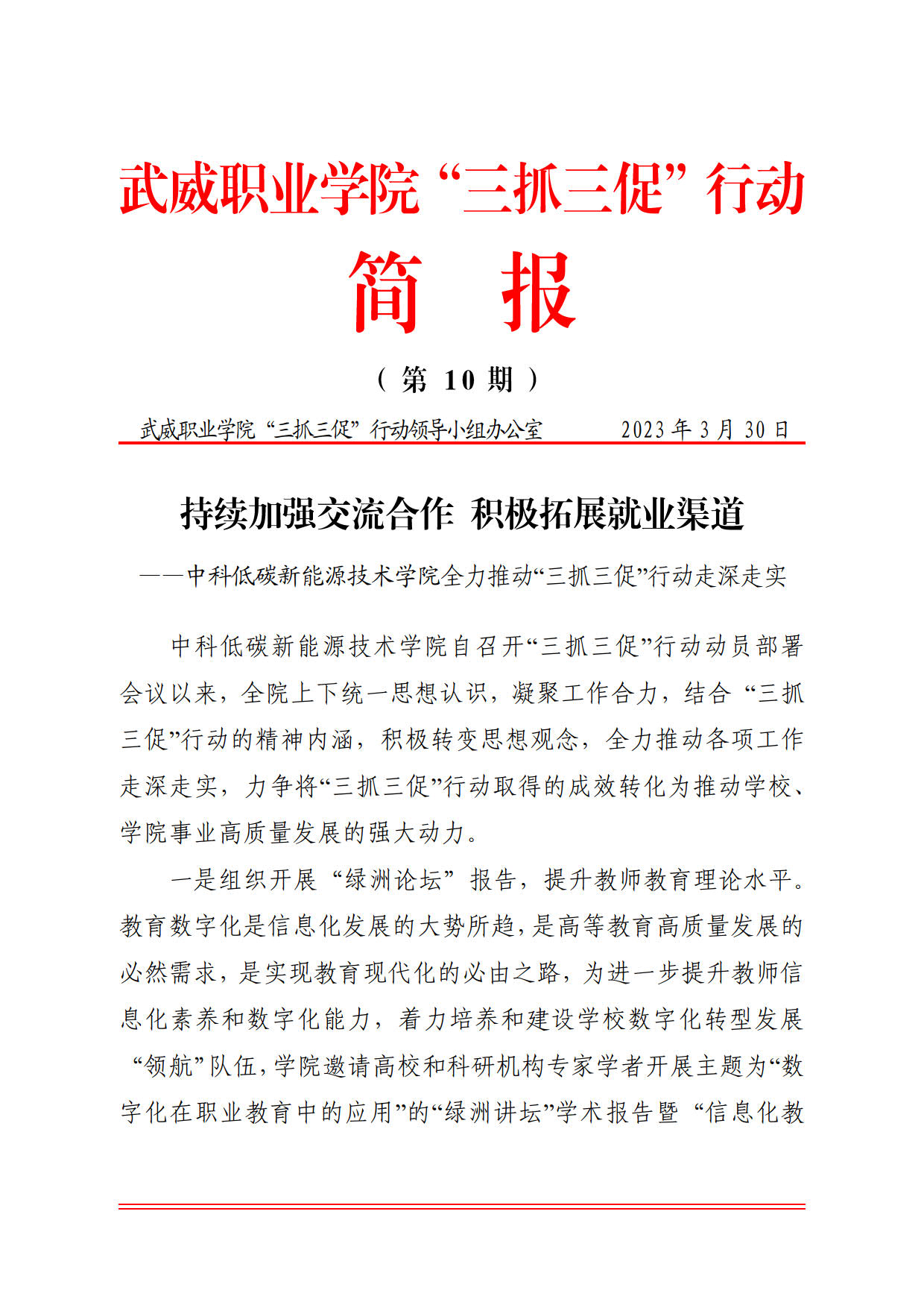 簡報第10期:持續(xù)加強(qiáng)交流合作 積極拓展就業(yè)渠道