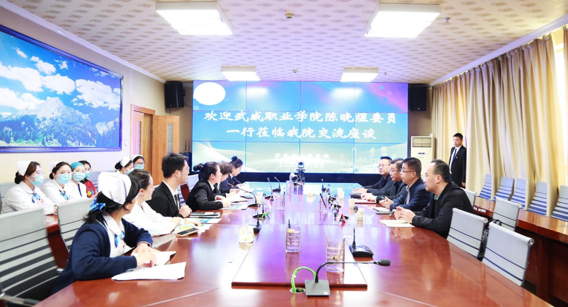 在和田地區(qū)人民醫(yī)院訪企拓崗座談會(huì)上,陳曉煜介紹了學(xué)校發(fā)展情況和本次走訪醫(yī)院的工作任務(wù),希望進(jìn)一步加強(qiáng)校院深度合作,共同優(yōu)化人才培養(yǎng)方案和課程設(shè)置,提升學(xué)校人才培養(yǎng)質(zhì)量,為邊疆衛(wèi)生事業(yè)發(fā)展提供人才支持。張建輝從學(xué)校二級(jí)學(xué)院設(shè)置、師資隊(duì)伍、教育教學(xué)、開設(shè)專業(yè)、人才培養(yǎng)、畢業(yè)生實(shí)習(xí)就業(yè)等方面做了介紹。和田地區(qū)人民醫(yī)院院長艾尼玩·阿布都熱依木介紹了醫(yī)院的基本情況及用人需求,對(duì)我校畢業(yè)生給予了高度評(píng)價(jià)。醫(yī)院現(xiàn)有我校醫(yī)藥衛(wèi)生類專業(yè)畢業(yè)生86人,其中13名護(hù)理專業(yè)畢業(yè)生擔(dān)任相關(guān)科室護(hù)士長,成為醫(yī)院護(hù)理崗位中堅(jiān)力量,他希望學(xué)校培養(yǎng)更多優(yōu)秀畢業(yè)生到醫(yī)院實(shí)習(xí)就業(yè)。