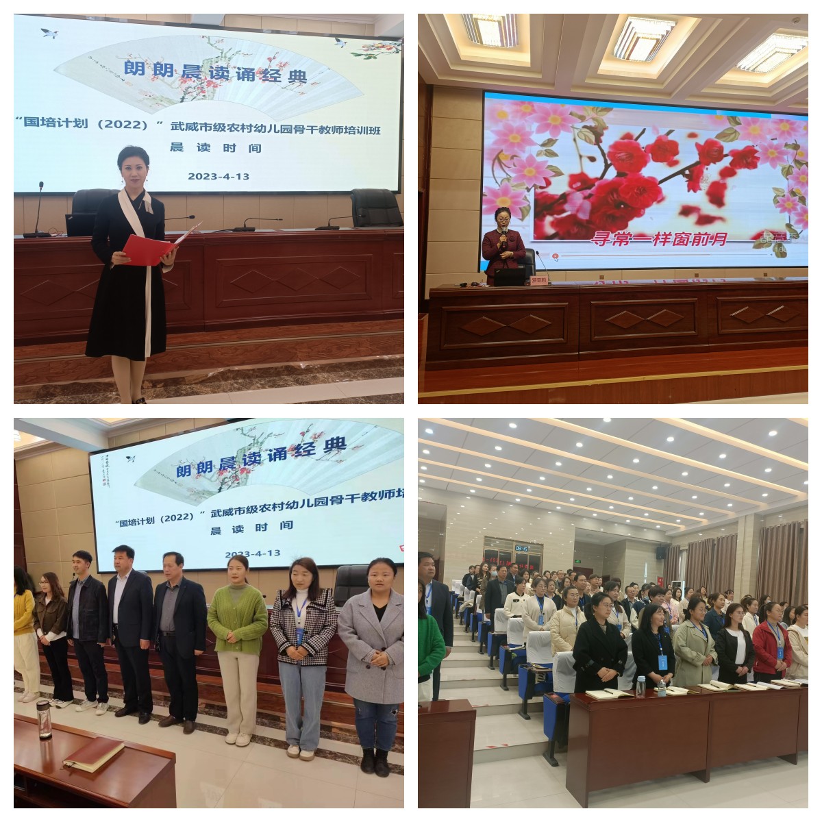 相約晨光,不負(fù)韶華。每天的培訓(xùn)從元?dú)鉂M滿的“郎朗晨讀誦經(jīng)典”開始,袁潔、趙穎等老師作為領(lǐng)讀人帶領(lǐng)全體學(xué)員誦讀詩詞、經(jīng)典名篇。袁潔老師領(lǐng)讀的《涼州詞》、趙穎老師領(lǐng)讀的《祖國啊,我親愛的祖國》,時而豪邁,時而溫婉,讓培訓(xùn)學(xué)員感受到與眾不同的浸潤式培訓(xùn)體驗(yàn)。