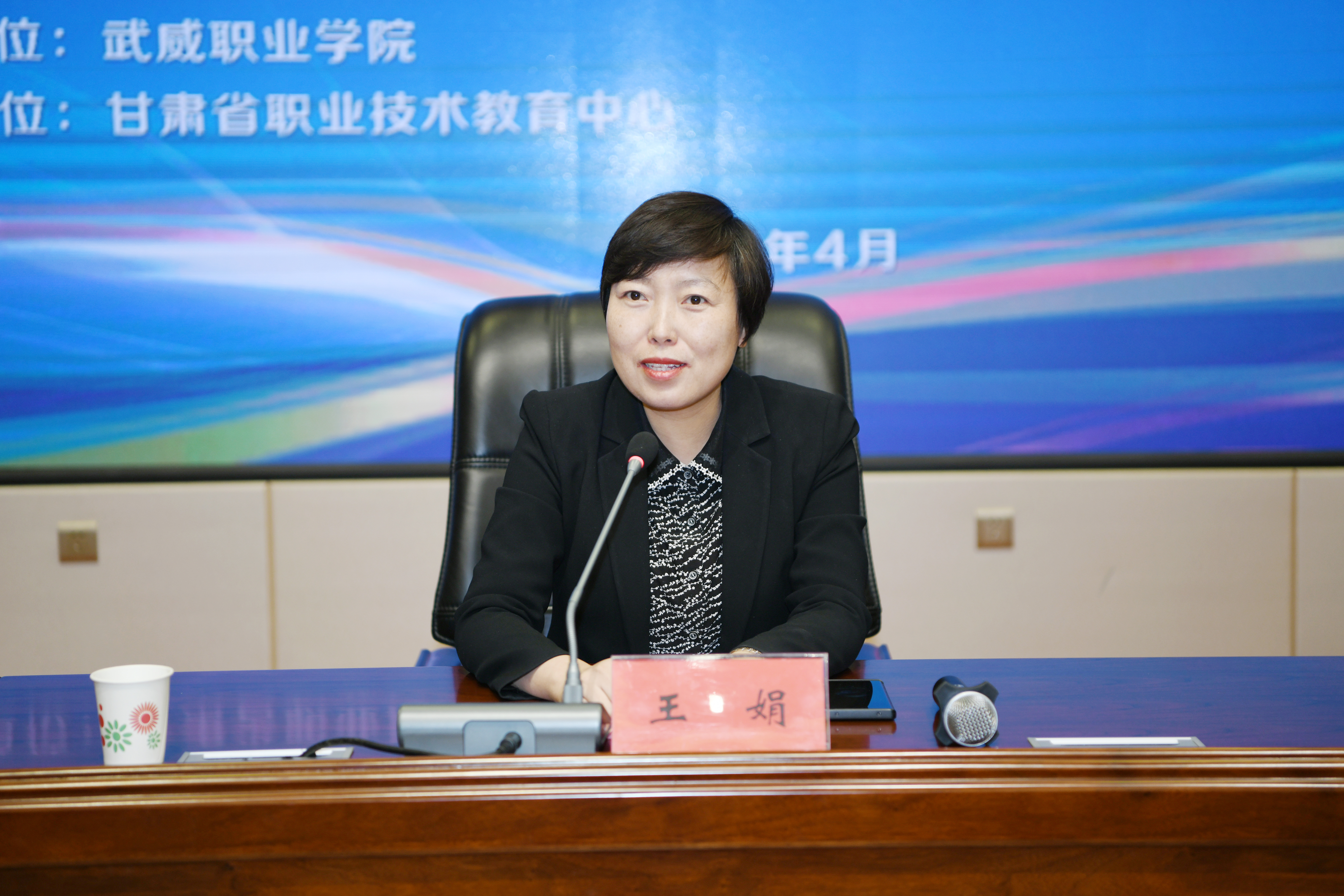 武威市教育局黨組書(shū)記、局長(zhǎng)王娟宣布2023年“中銀杯”甘肅省職業(yè)院校技能大賽武威職業(yè)學(xué)院賽點(diǎn)開(kāi)賽。
