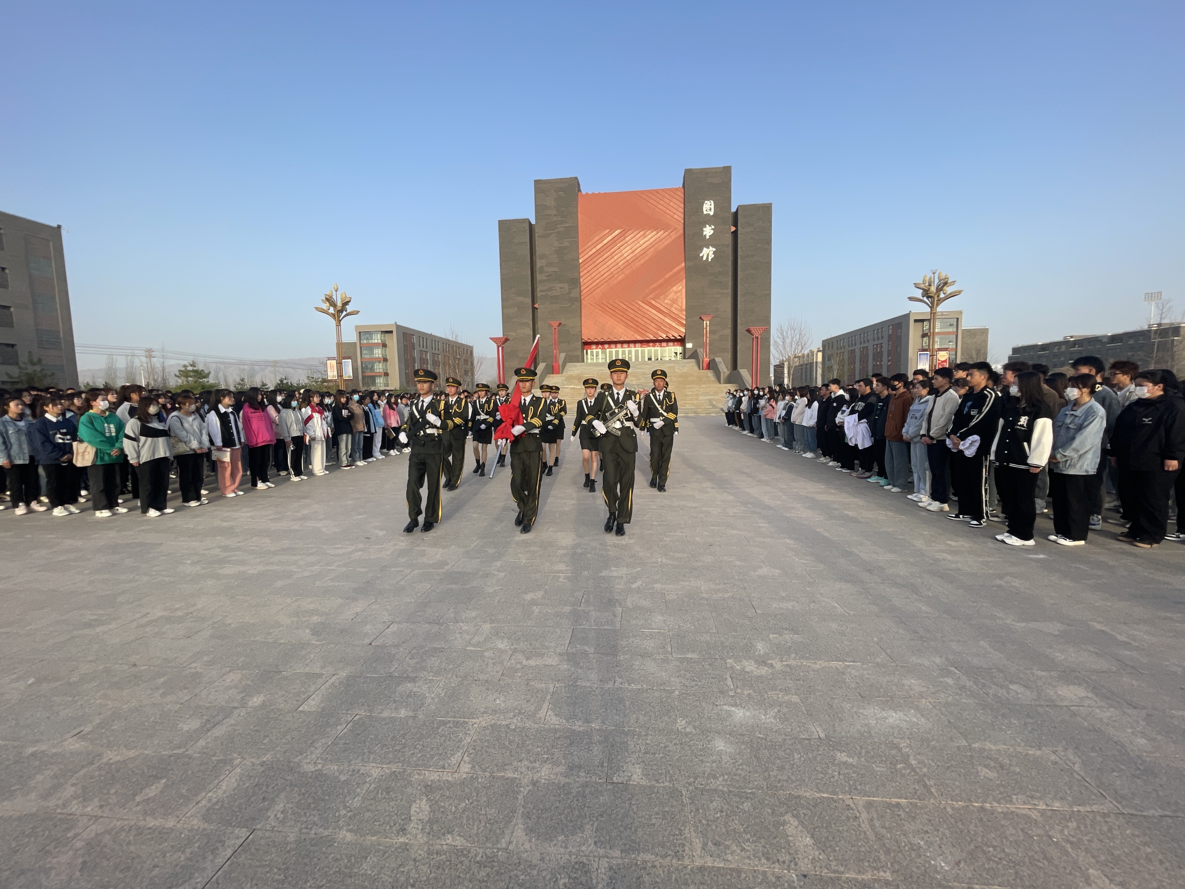 4月17日上午,醫(yī)學技術學院在學校圖書館東廣場舉行升國旗儀式,全體師生參加。
