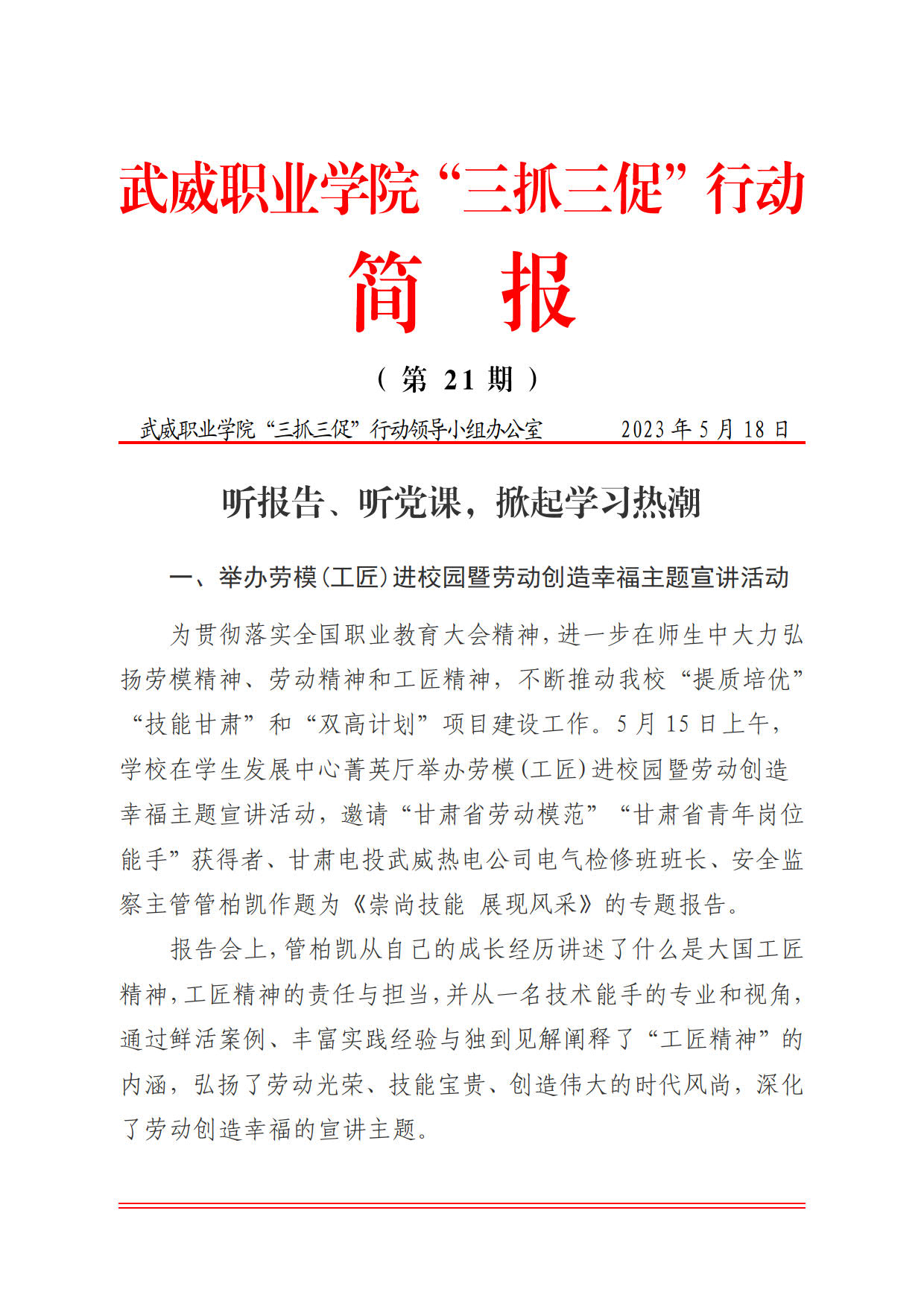 簡報第21期:聽報告,聽黨課,掀起學習熱潮
