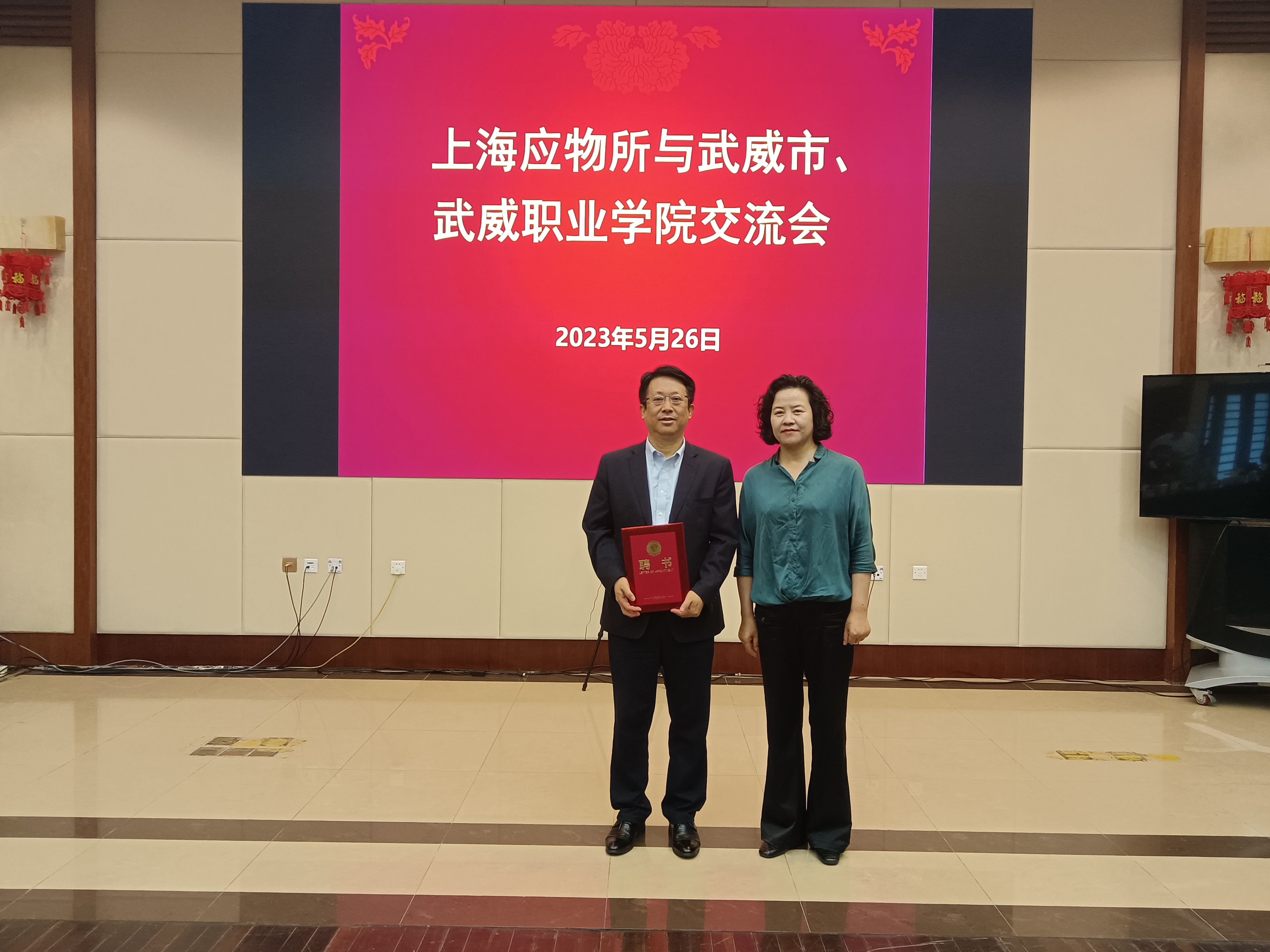 座談會(huì)上,柳生墜為武威職業(yè)學(xué)院特聘專家中國(guó)石油化工股份有限公司上海石油化工研究院楊為民院士頒發(fā)聘書(shū)。