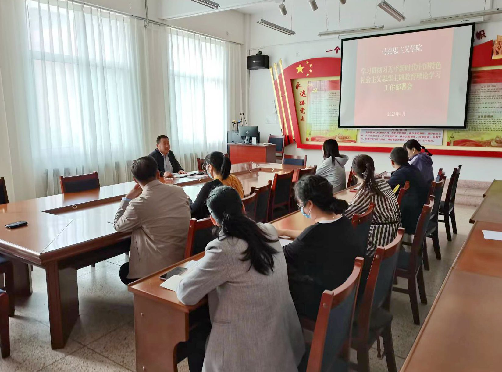 馬克思主義學(xué)院積極響應(yīng),迅速啟動,第一時(shí)間召開了主題教育動員部署會,對學(xué)院開展學(xué)習(xí)貫徹習(xí)近平新時(shí)代中國特色社會主義思想主題教育進(jìn)行安排部署,始終堅(jiān)持高標(biāo)準(zhǔn)、嚴(yán)要求,扎實(shí)開展學(xué)習(xí),制定集體學(xué)習(xí)計(jì)劃表和個(gè)人自學(xué)表,明確學(xué)習(xí)內(nèi)容、時(shí)間安排、學(xué)習(xí)方式,組織領(lǐng)導(dǎo)等。以深入學(xué)習(xí)習(xí)近平新時(shí)代中國特色社會主義思想為主要內(nèi)容,以提升思政課教師政治能力為重點(diǎn),以深化黨員理論武裝為抓手,以全面提高教學(xué)能力為著力點(diǎn),引導(dǎo)黨員讀原著學(xué)原文悟原理,認(rèn)真研讀黨的二十大報(bào)告和黨章,學(xué)習(xí)《習(xí)近平著作選讀》《習(xí)近平新時(shí)代中國特色社會主義思想專題摘編》等指定學(xué)習(xí)材料,全面、系統(tǒng)、準(zhǔn)確領(lǐng)會和把握習(xí)近平新時(shí)代中國特色社會主義思想的科學(xué)體系、核心要義、實(shí)踐要求。