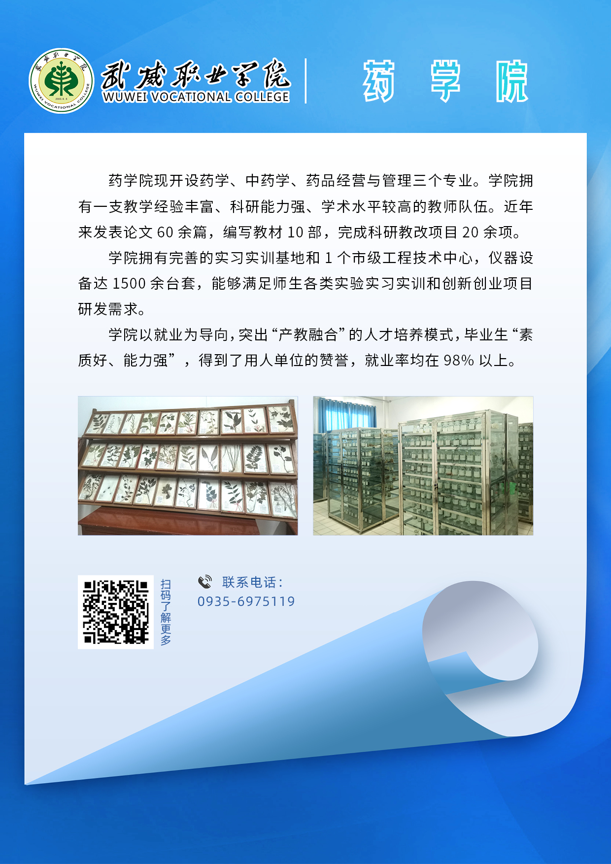 武威職業(yè)學(xué)院二級(jí)學(xué)院專業(yè)簡(jiǎn)介丨藥學(xué)院