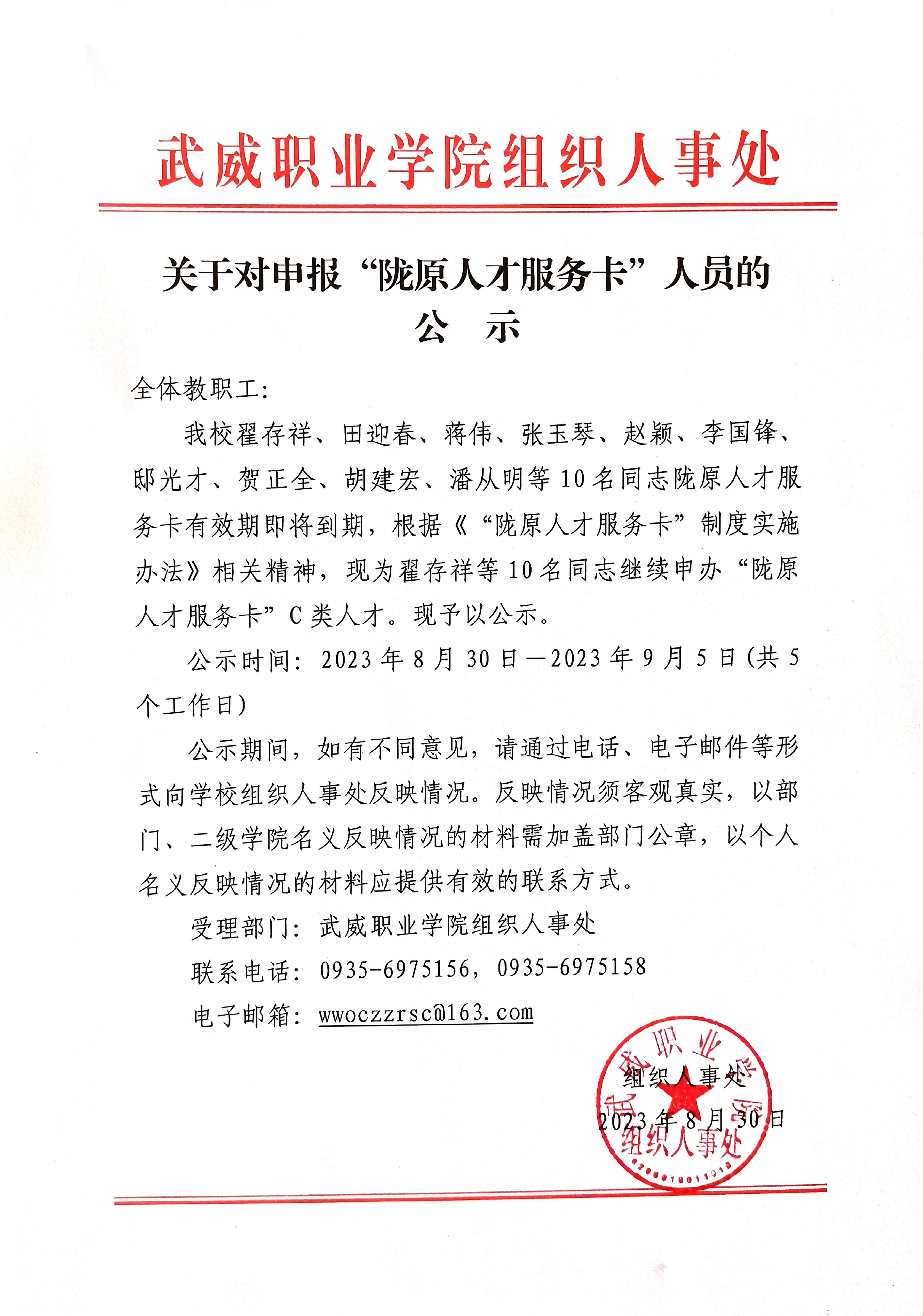 關(guān)于申報“隴原人才服務(wù)卡”人員的公示
