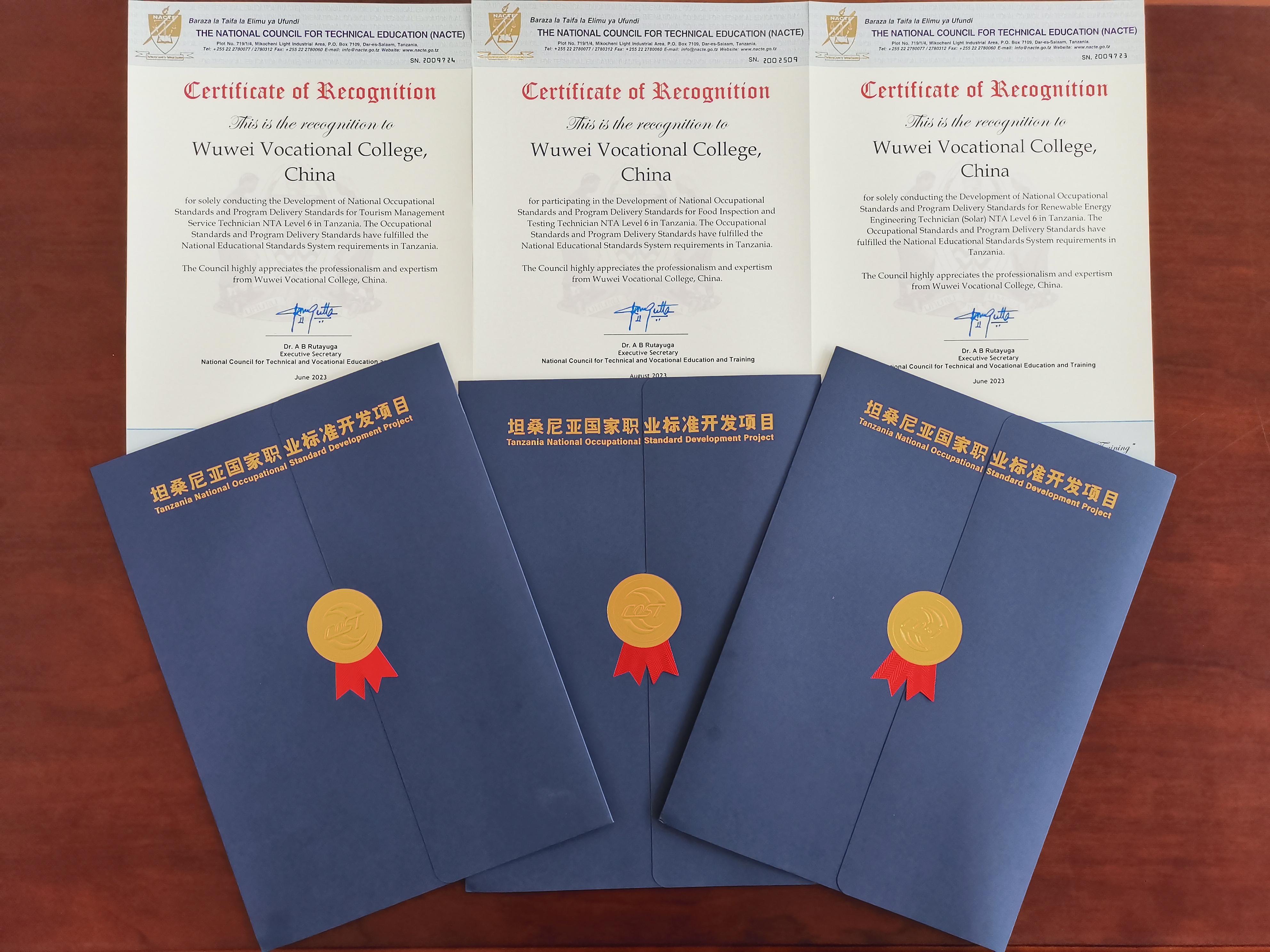 旅游管理服務(wù)技術(shù)員6級(jí)、新能源工程技術(shù)員(太陽(yáng)能)6級(jí)、食品檢驗(yàn)檢測(cè)員6級(jí)三項(xiàng)職業(yè)標(biāo)準(zhǔn)由坦桑尼亞國(guó)家職業(yè)教育委員會(huì)注冊(cè)認(rèn)證納入坦桑尼亞國(guó)家職業(yè)教育體系,在坦桑尼亞國(guó)家職業(yè)院校推廣使用,指導(dǎo)和規(guī)范該國(guó)職業(yè)教育人才培養(yǎng)工作。
