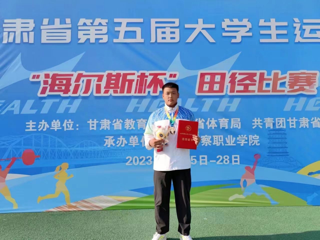 中科低碳新能源技術(shù)學院學子代表學校在甘肅省第五屆大學生運動會中喜獲佳績,其中馬高昆同學在田徑男子鐵餅丙組項目和田徑男子鉛球丙組項目比賽中獲得2枚金牌,剡國輝同學在田徑男子丙組鉛球項目比賽中獲得銀牌。