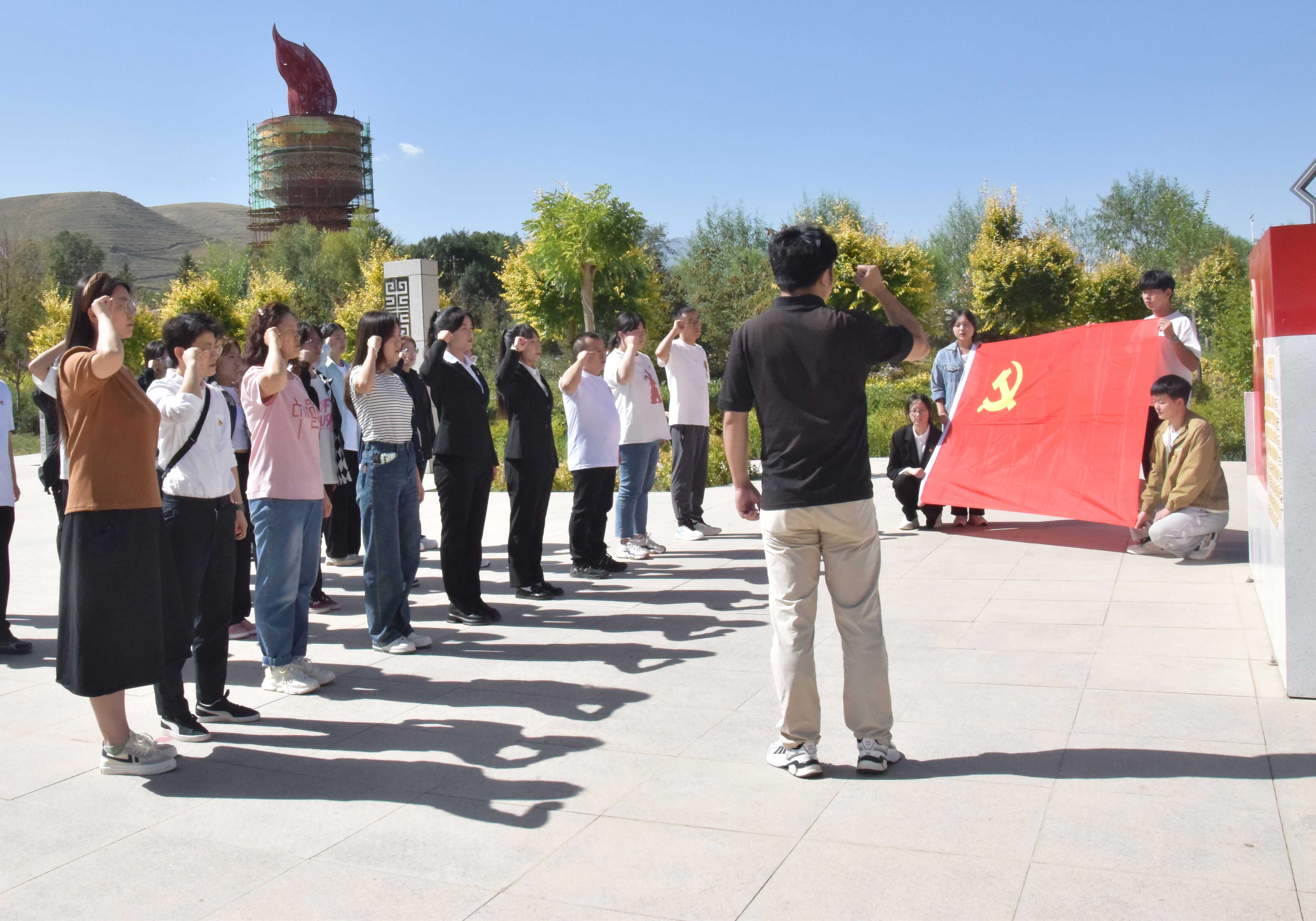 在開展學(xué)習(xí)貫徹習(xí)近平新時代中國特色社會主義思想主題教育組織生活會之后,為進一步深刻領(lǐng)會習(xí)近平新時代中國特色社會主義思想,認真抓好問題整改,增強黨員黨性修養(yǎng),加強黨員先鋒意識,改善工作作風(fēng),9月16日,藝術(shù)與教育學(xué)院黨總支組織教師支部、學(xué)生第一、第二黨支部黨員師生50余人赴古浪戰(zhàn)役紀念館開展主題黨日活動。
