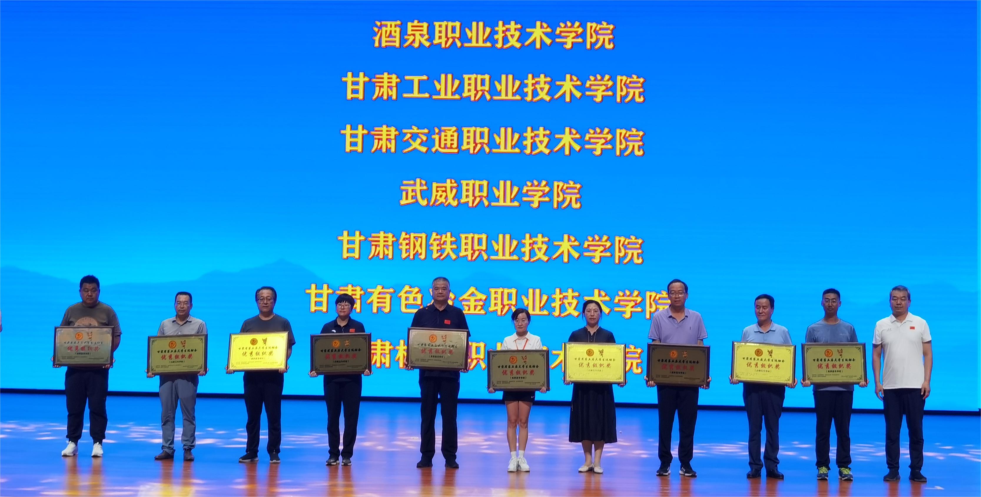 7月29日,甘肅省第五屆大學(xué)生運(yùn)動(dòng)會(huì)在甘肅省警察職業(yè)學(xué)院落下帷幕。我校代表團(tuán)參加了排球、籃球、健美操、田徑4個(gè)項(xiàng)目比賽,喜獲2金4銀3銅,學(xué)校獲優(yōu)秀組織獎(jiǎng)。