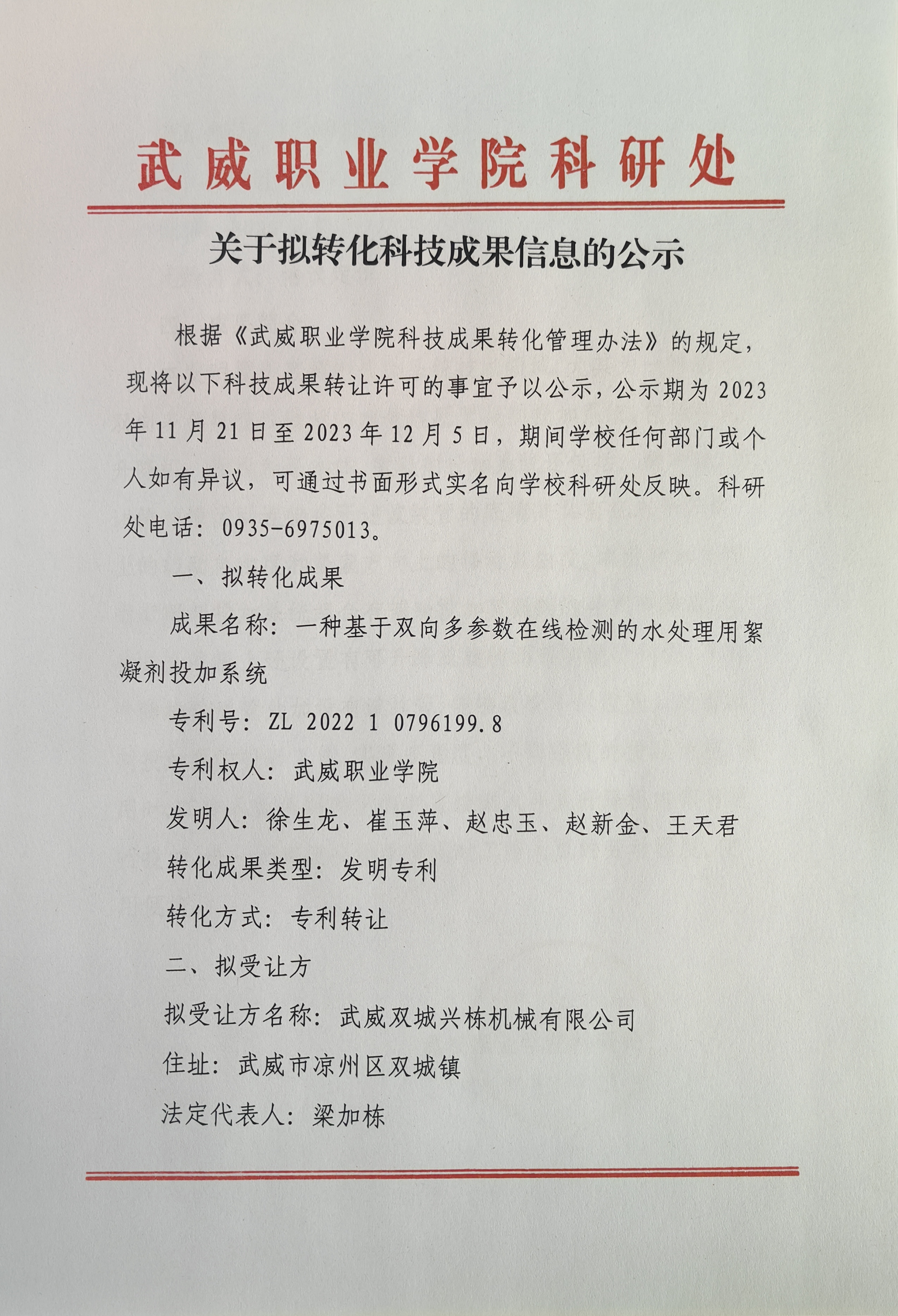 關于擬轉化科技成果信息的公示
