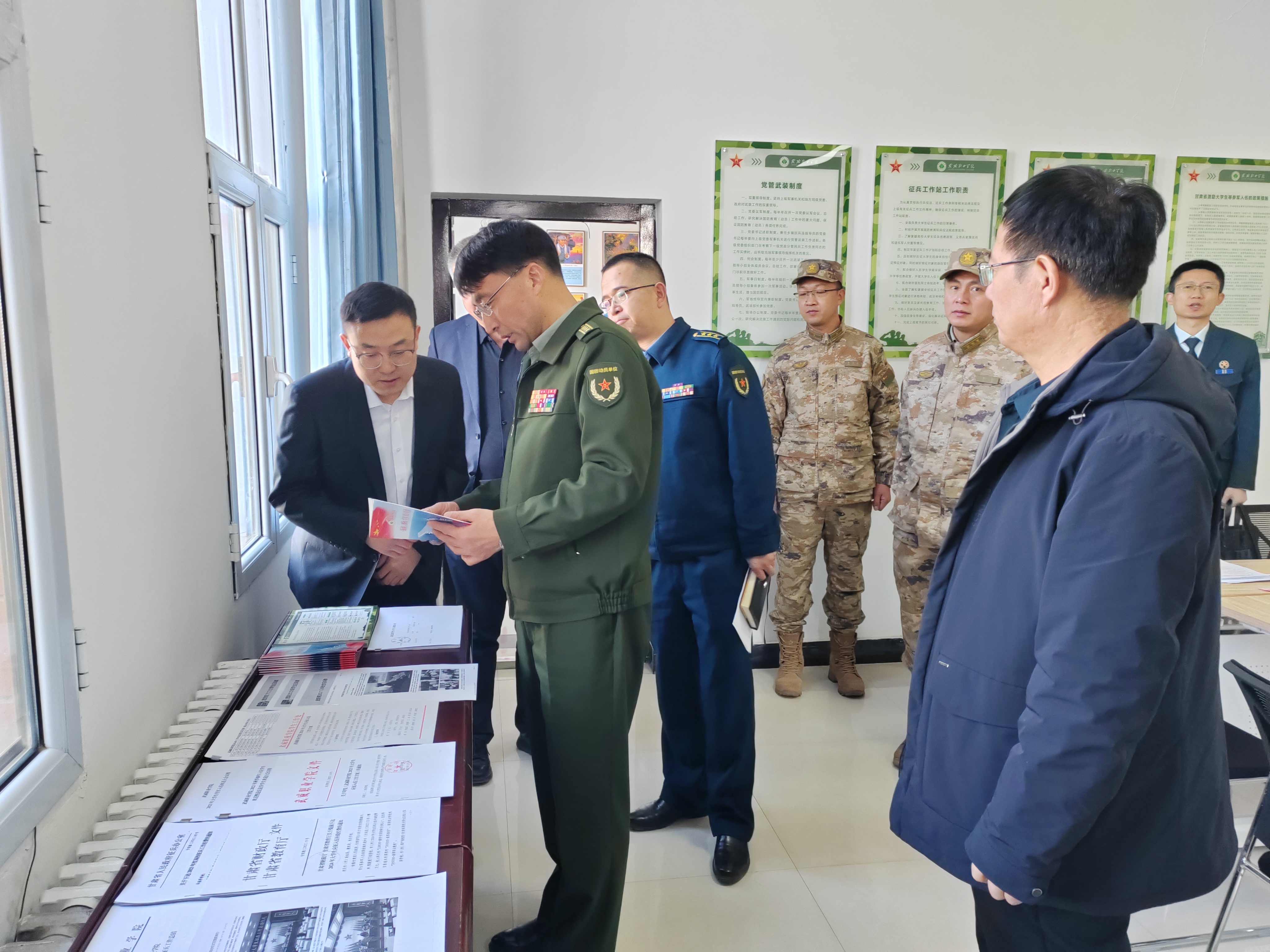 1月9日下午,武威市征兵領(lǐng)導(dǎo)小組副組長(zhǎng)、軍分區(qū)大校司令員陳習(xí)友帶工作組一行5人,來(lái)我校調(diào)研征兵工作開(kāi)展情況。校長(zhǎng)、黨委副書記張開(kāi)禮,黨委委員、副校長(zhǎng)王守云陪同調(diào)研。