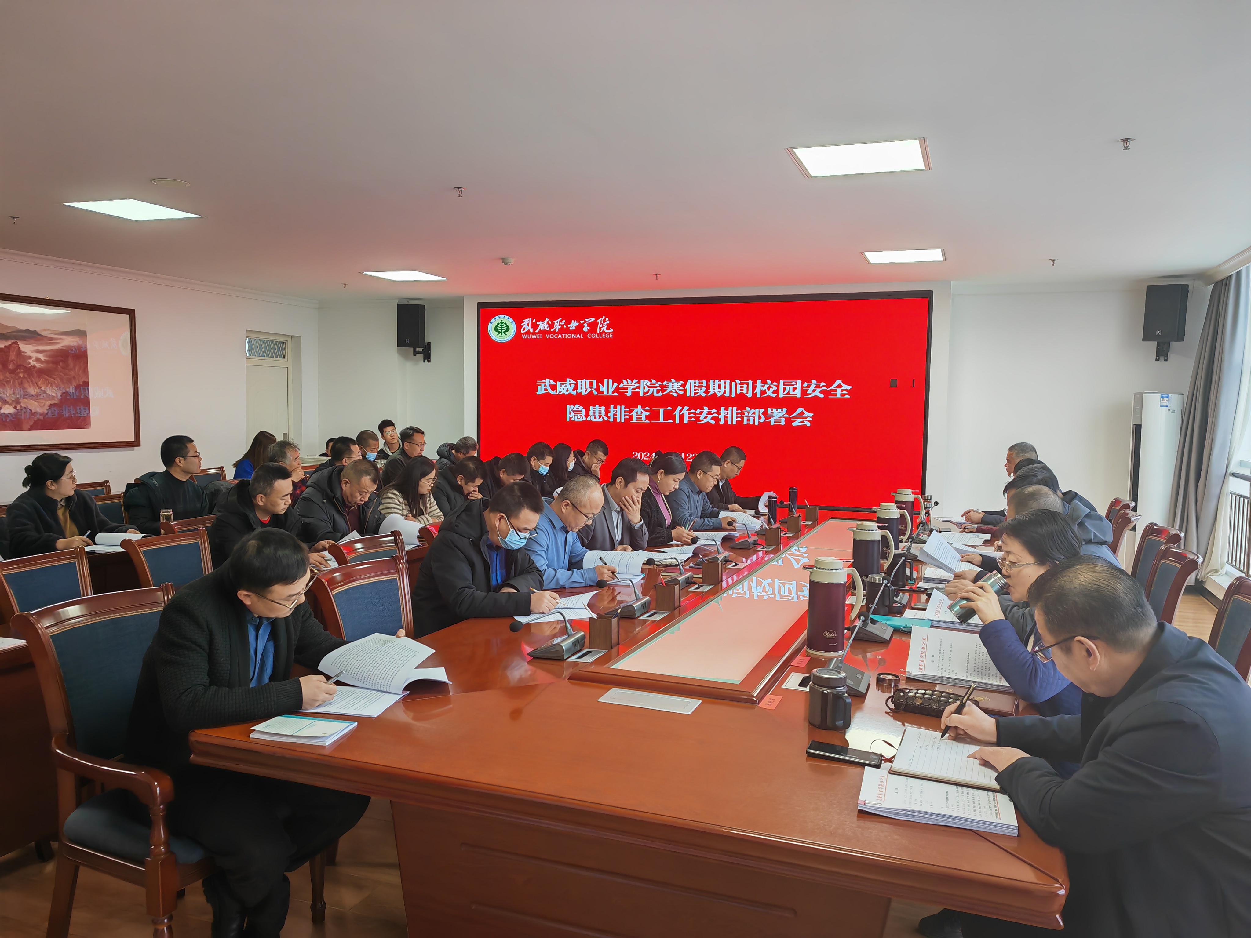 為全面做好校園安全穩(wěn)定工作,時刻保持風(fēng)險意識,及時消除安全隱患,嚴防各類安全事故的發(fā)生,1月23日上午,在能源科技樓811會議室召開2024年寒假期間校園安全隱患排查工作安排部署會議。校領(lǐng)導(dǎo)及各部門、二級學(xué)院負責(zé)人參加。校長張開禮主持會議并做了講話。