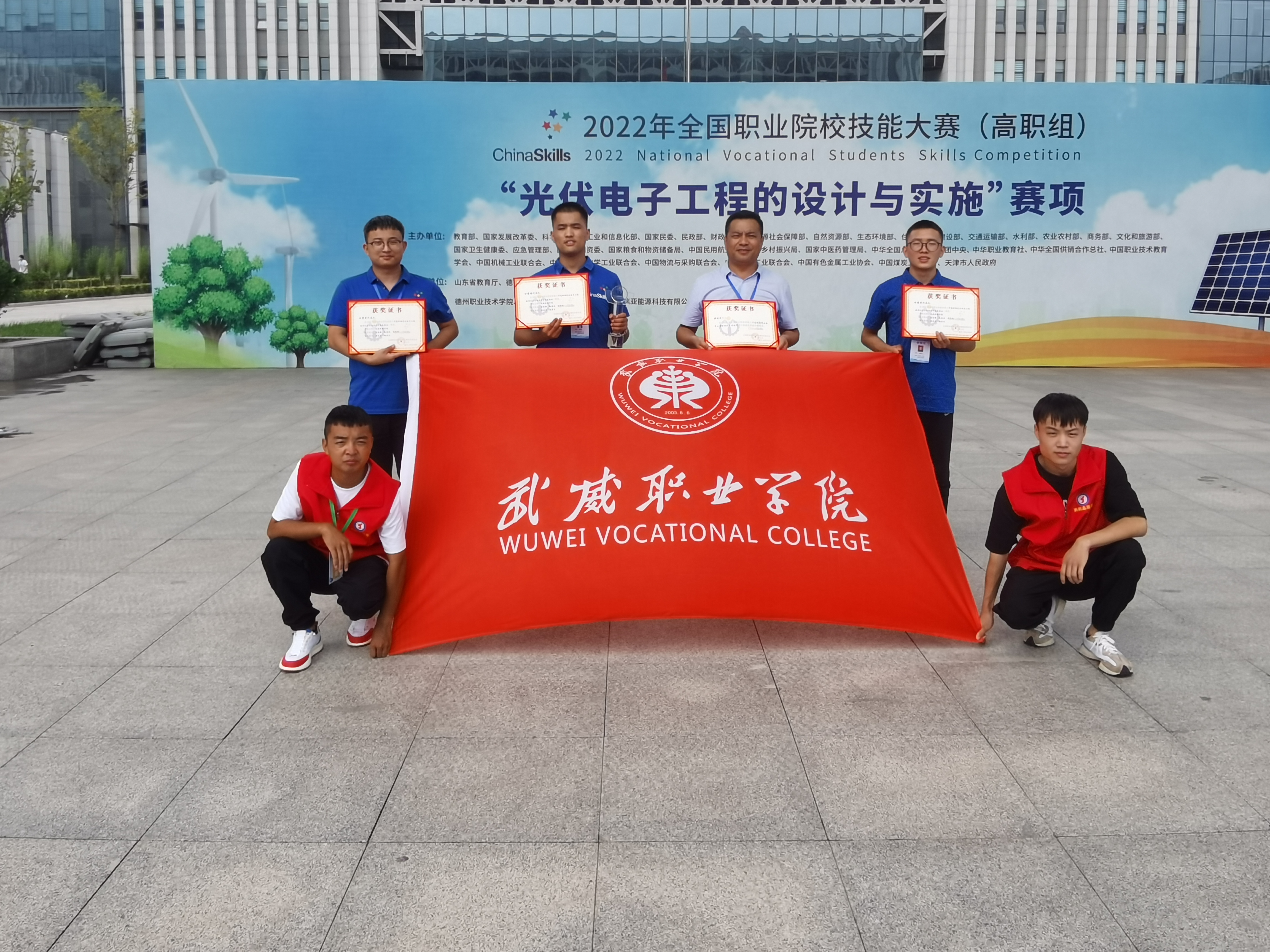 8月22日至23日,由教育部、工業(yè)和信息化部、財(cái)政部、人力資源和社會(huì)保障部、住房和城鄉(xiāng)建設(shè)部、交通運(yùn)輸部、農(nóng)業(yè)部等部委主辦的2022年全國(guó)職業(yè)院校技能大賽高職組“光伏電子工程的設(shè)計(jì)與實(shí)施”賽項(xiàng)在山東德州職業(yè)技術(shù)學(xué)院舉辦,來自全國(guó)30個(gè)省(市)、自治區(qū)的55支代表隊(duì)參加了比賽。武威職業(yè)學(xué)院中科低碳新能源技術(shù)學(xué)院高東興、富金強(qiáng)、趙寶林三名同學(xué)代表甘肅省參加本次大賽,最終榮獲國(guó)賽一等獎(jiǎng),完全實(shí)現(xiàn)了賽前確定的“穩(wěn)二爭(zhēng)一”的目標(biāo)任務(wù)。這是學(xué)校參加全國(guó)職業(yè)院校技能大賽以來首次獲得國(guó)賽一等獎(jiǎng),實(shí)現(xiàn)了學(xué)校該賽項(xiàng)國(guó)獎(jiǎng)“零”的突破,開啟了學(xué)校專業(yè)建設(shè)高質(zhì)量發(fā)展新征程。本次優(yōu)異成績(jī)的取得充分展現(xiàn)了學(xué)校“崗課賽證”相融通的綜合育人效果,充分體現(xiàn)了學(xué)校深化“三教改革”推動(dòng)高質(zhì)量發(fā)展的成效,充分彰顯了學(xué)校實(shí)施“雙高計(jì)劃”“技能甘肅”“提質(zhì)培優(yōu)”等重大項(xiàng)目建設(shè)推進(jìn)高水平發(fā)展的成效,本次競(jìng)賽成績(jī)是對(duì)學(xué)校新能源類專業(yè)建設(shè)的肯定,也是武威乃至全省職業(yè)教育發(fā)展的試金石和榮光。