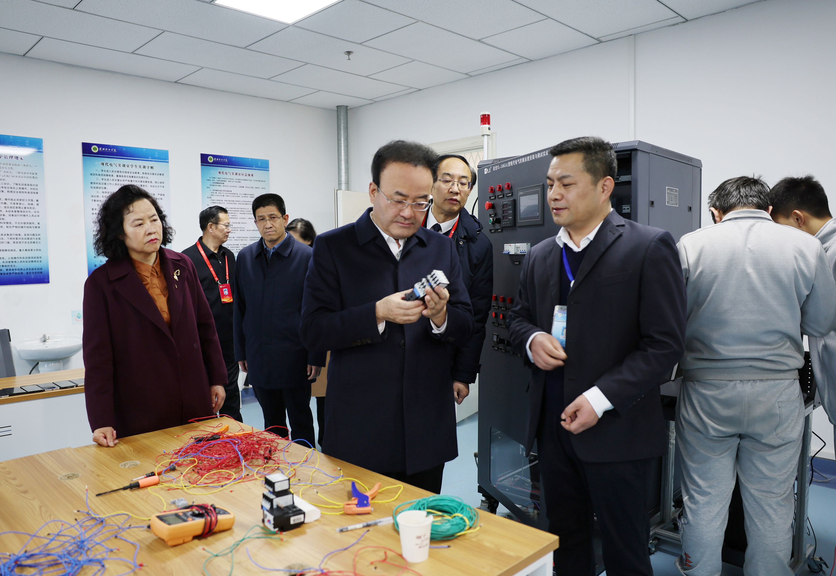 課前,王國(guó)斌調(diào)研了武威職業(yè)學(xué)院建設(shè)發(fā)展工作。他強(qiáng)調(diào),學(xué)院要始終堅(jiān)持辦學(xué)正確政治方向,落實(shí)立德樹人根本任務(wù),緊盯科技前沿,面向市場(chǎng),不斷優(yōu)化學(xué)校和專業(yè)布局,提高特色化辦學(xué)水平,培養(yǎng)更多的高素質(zhì)專業(yè)化技能人才。廣大教師要履行教書育人職責(zé),在專業(yè)教學(xué)中注重加強(qiáng)思想引領(lǐng)、言傳身教,努力培養(yǎng)擔(dān)當(dāng)民族復(fù)興大任的時(shí)代新人。