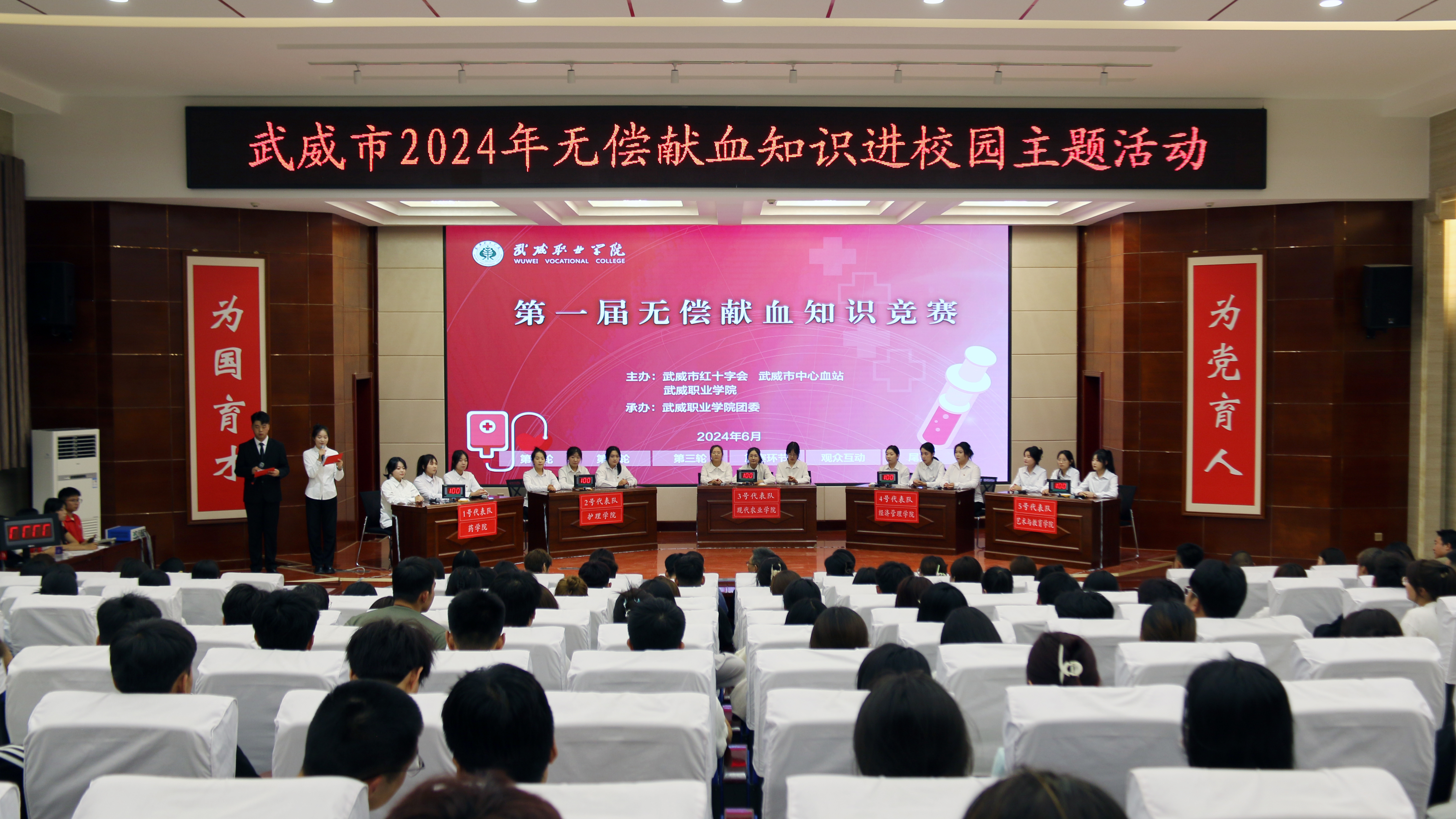 血液是生命的源泉,愛心是生命的曙光。6月17日,由武威職業(yè)學(xué)院、武威市紅十字會(huì)、武威市中心血站共同主辦的無償獻(xiàn)血知識(shí)競賽在菁英廳舉辦。