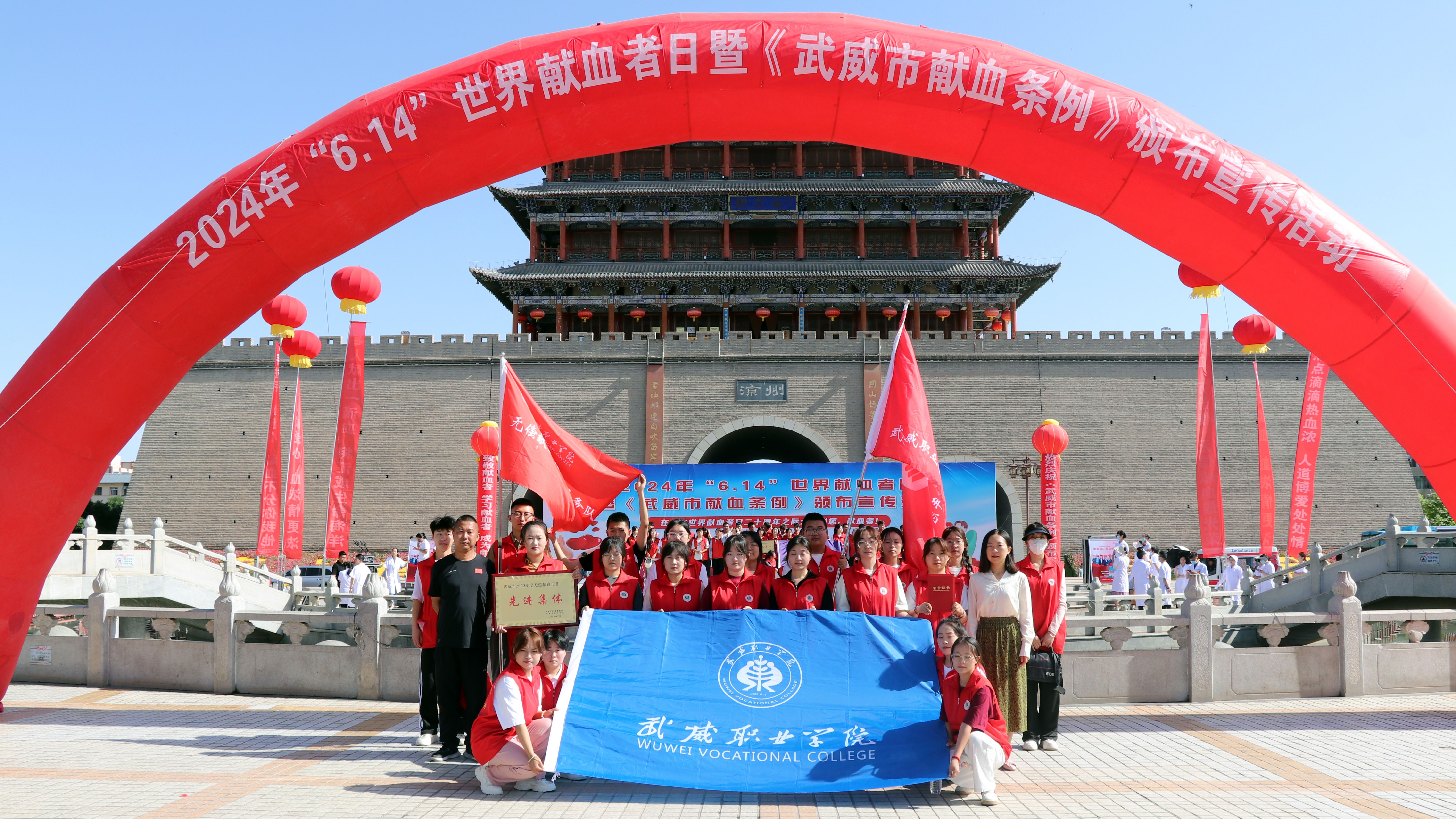 6月14日上午,我市2024年“6·14”世界獻(xiàn)血者日暨《武威市獻(xiàn)血條例》頒布宣傳活動(dòng)在南城門廣場舉辦。市人大常委會副主任劉光美宣讀《條例》頒布公告,并為全市2023年度無償獻(xiàn)血工作先進(jìn)集體、應(yīng)急獻(xiàn)血先進(jìn)集體和先進(jìn)個(gè)人頒發(fā)獎(jiǎng)牌和榮譽(yù)證書。學(xué)校被評為武威市2023年度無償獻(xiàn)血工作先進(jìn)集體,1名教師被評為先進(jìn)個(gè)人。