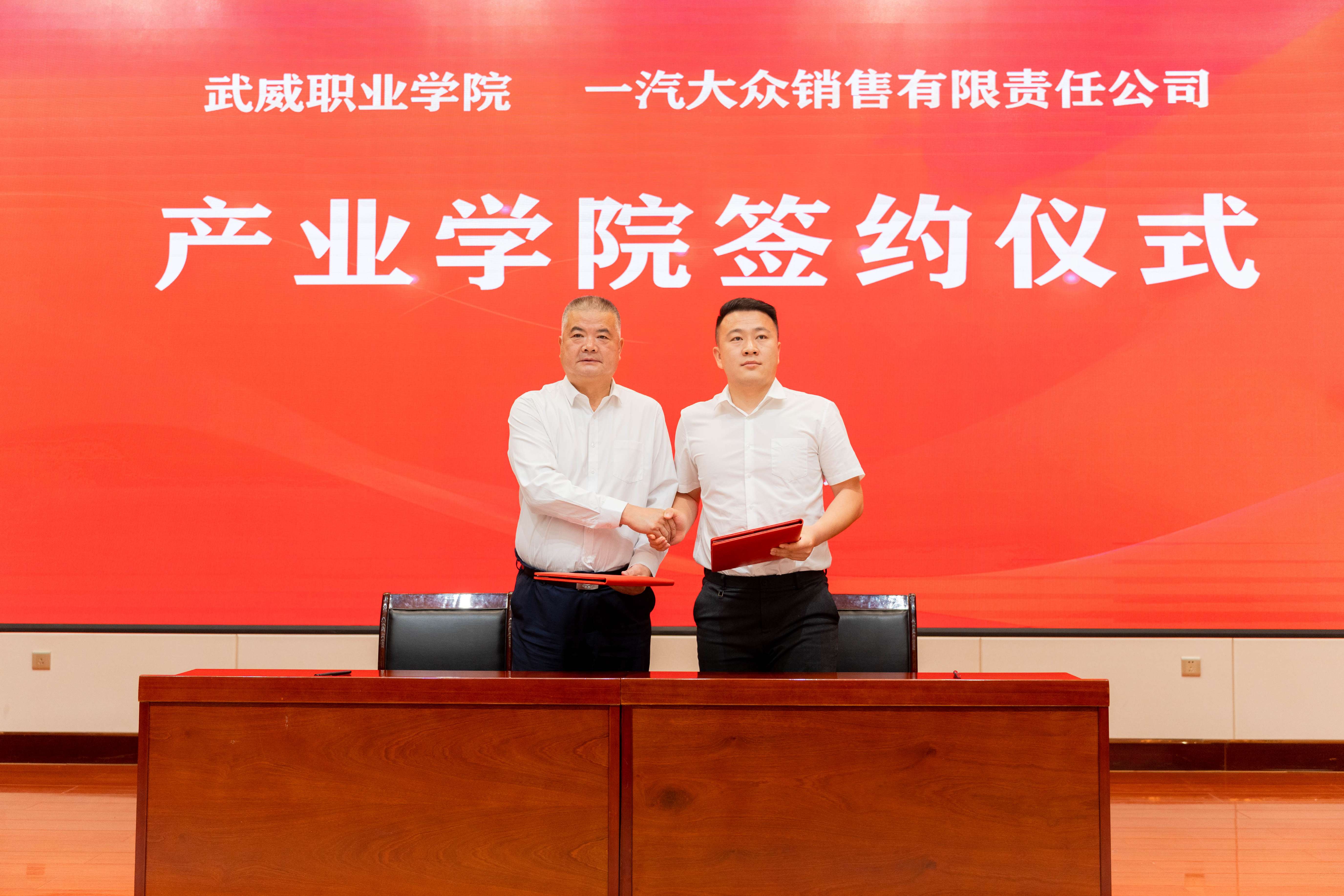 授牌儀式后,武威市教育局黨組書記、局長王娟和武威職業(yè)學(xué)院黨委書記王宏為綠色化工行業(yè)產(chǎn)教融合創(chuàng)新研究院揭牌,武威職業(yè)學(xué)院黨委委員、副校長王守云與一汽大眾有限責(zé)任公司相關(guān)負(fù)責(zé)同志簽約,共建產(chǎn)業(yè)學(xué)院。