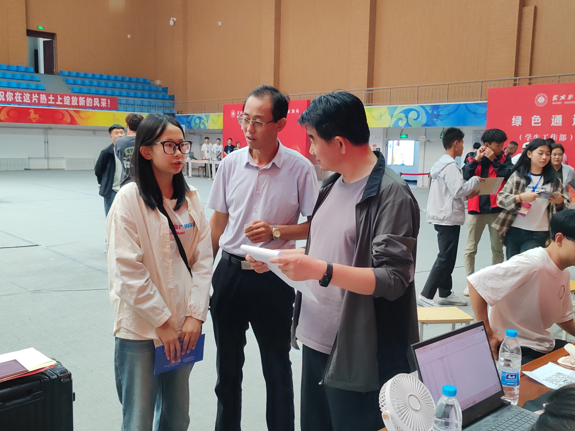 信息技術(shù)學(xué)院黨總支書記史子新到迎新現(xiàn)場,了解新生報(bào)到情況,慰問迎新工作人員和志愿者,要求工作人員和志愿者要落細(xì)落實(shí)各項(xiàng)工作,了解新生的適應(yīng)情況,勉勵(lì)新生保持積極樂觀、堅(jiān)韌不拔的生活態(tài)度,練就過硬的本領(lǐng)報(bào)效國家、感恩社會(huì)、服務(wù)人民。