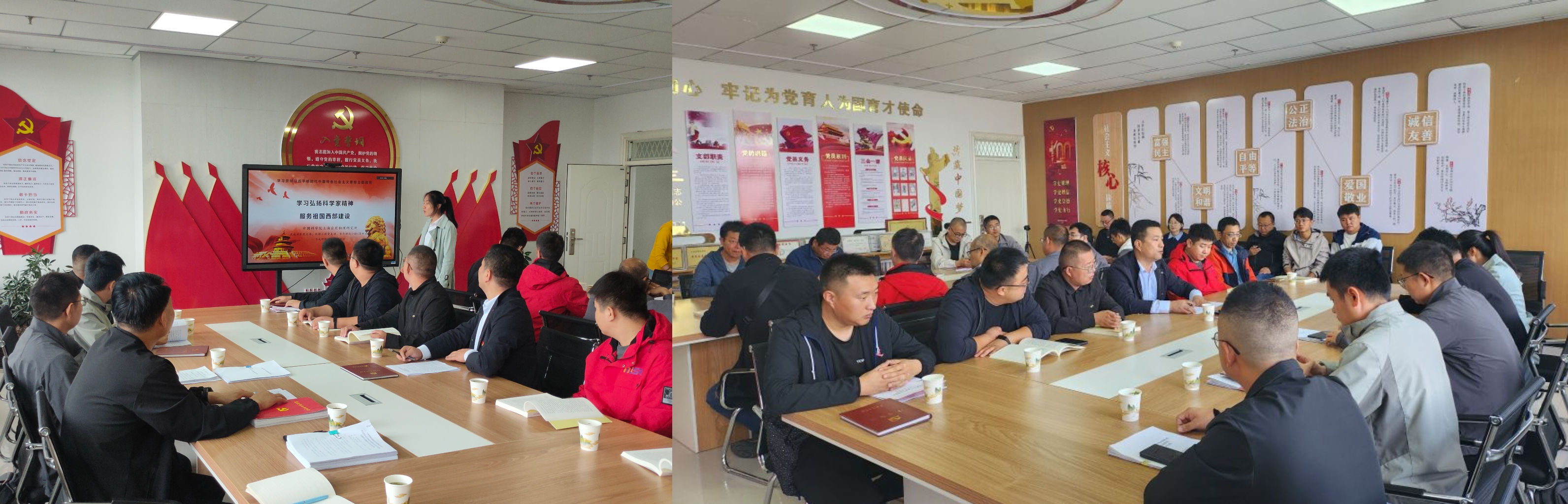 參觀結束后,全體黨員在中科低碳新能源技術學院黨員活動室進行了交流研討。期間,中國科學院上海應用物理研究所武威園區(qū)黨支部支部書記趙先堂首先介紹了來訪的人員和此次聯(lián)合黨建的目的,之后上海應物所武威園區(qū)辦副主任嚴慧娟講了題為《學習弘揚科學家精神 服務祖國西部建設》的主題黨課,中科低碳新能源技術學院黨總支書記、院長黃述杰以“創(chuàng)建基層黨建品牌,引領教育教學改革發(fā)展”為主題,介紹了學院黨總支基本情況和學院黨支部標準化建設情況,雙方就黨建工作中好的做法和經(jīng)驗進行了分享和交流。