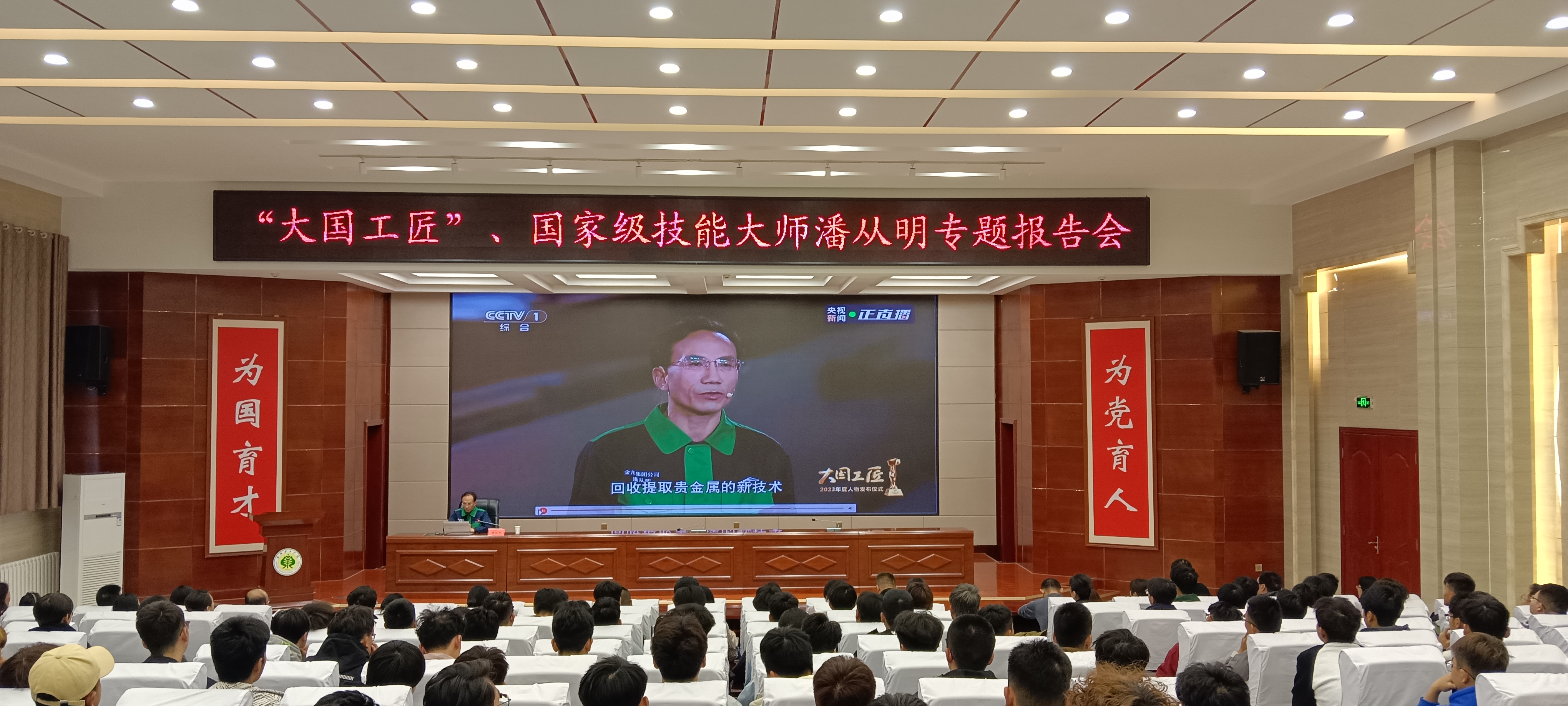 潘從明以“弘揚(yáng)工匠、勞模精神 勇?lián)聲r(shí)代使命”為題,從創(chuàng)新的使命與初心、創(chuàng)新的方法、新員工塑培等方面結(jié)合自身工作經(jīng)歷,分享了從金川公司技校畢業(yè)后,通過自己的不懈努力,完成了從一名學(xué)徒到普通工人、高級(jí)技師到國家級(jí)技能大師,再到大國工匠的跨越。