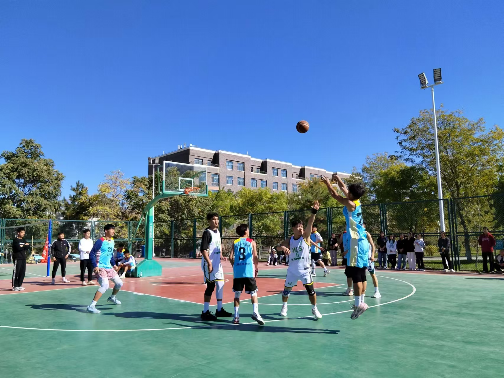 此次比賽歷時一月余,共9個二級學院參加。經(jīng)過48場次的激烈角逐,11月5日晚,在學校體育館舉行了男籃總決賽。賽場上,球員們積極拼搶,雙方隊員你來我往,攻防轉(zhuǎn)換,全力投入,搶斷、突破、跳投、遠投,不時上演精彩的配合。