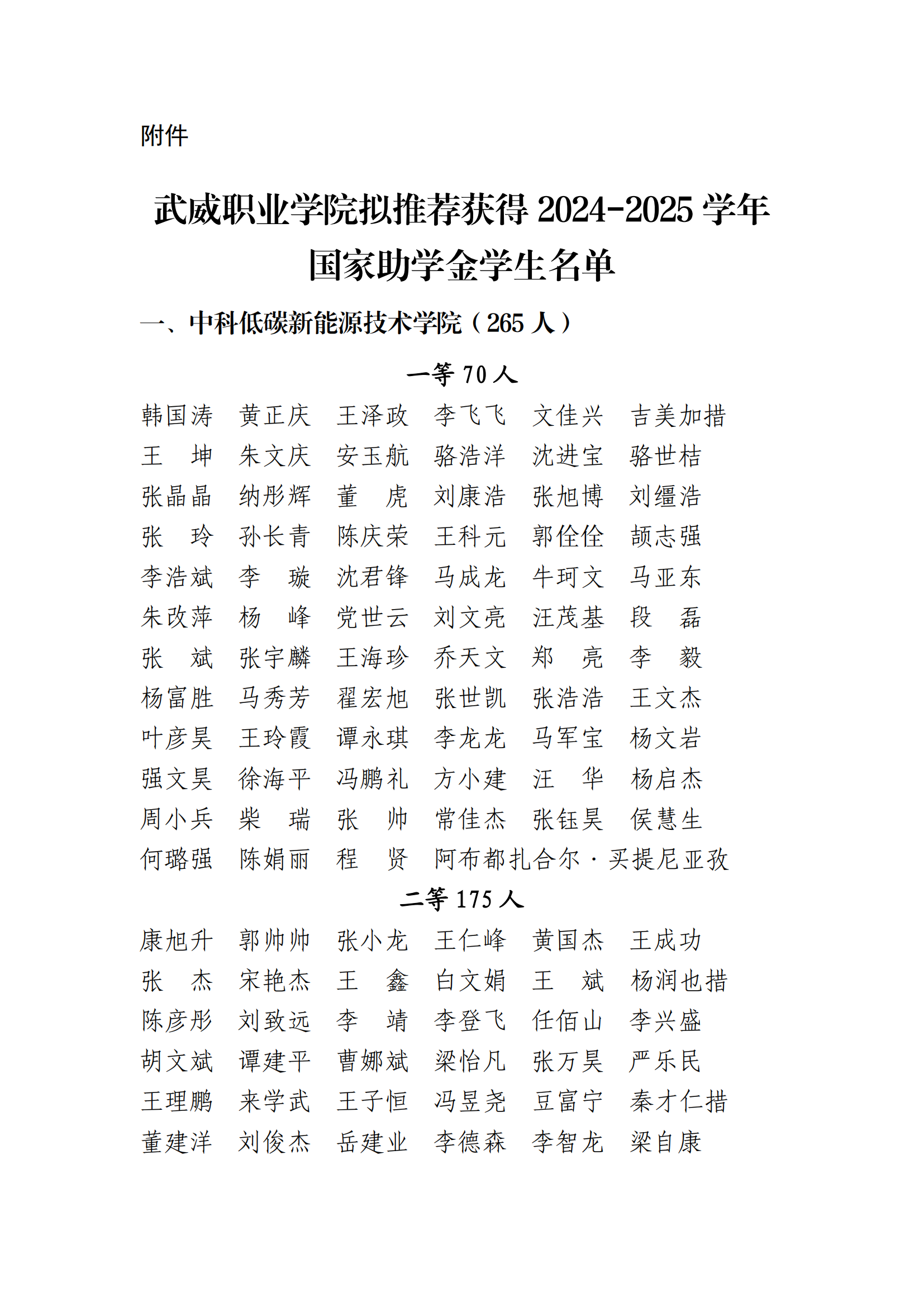 武威職業(yè)學院關于2024-2025學年國家助學金評選結果的公示